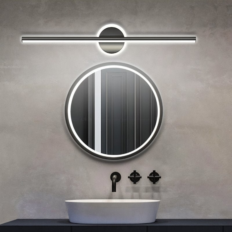 The Nyxtra Wall Lamp is a sleek, modern lighting fixture crafted from durable aluminum and acrylic, perfect for bathroom vanity setups. Its minimalist design features a cylindrical bar intersecting a circular base, delivering a striking geometric aesthetic. Available in three sizes and two finishes (gold and black), its clean design and functionality make it ideal for contemporary interiors.
