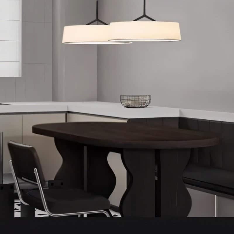 The Odeon Pendant Light features a wide fabric drum shade and a sleek aluminum frame, creating a refined, balanced silhouette. Its diffused illumination enhances dining areas, living rooms, and commercial spaces. The minimalist yet sophisticated design complements modern, contemporary, and transitional interiors.