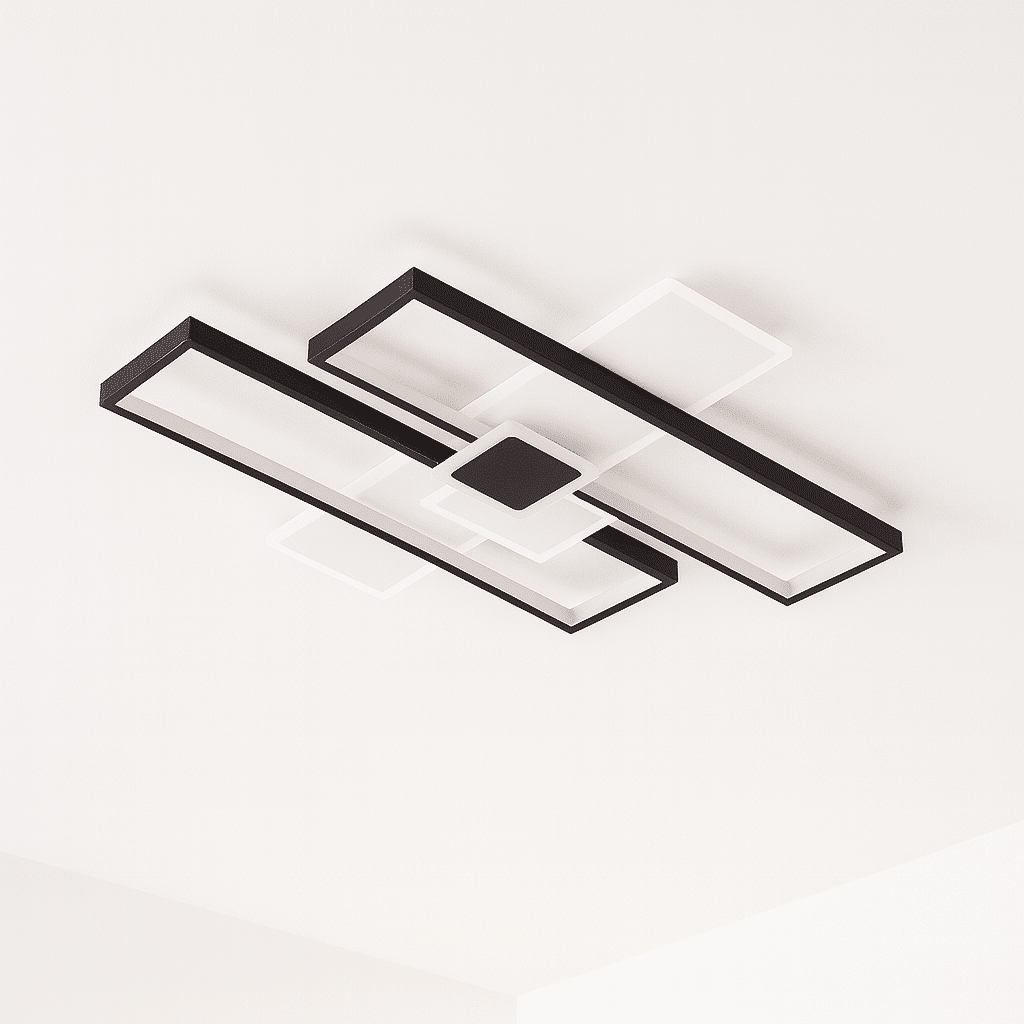 The Ombrin Ceiling Light features an intersecting rectangular frame design, creating a geometric focal point. Crafted from acrylic and aluminum, this modern light fixture offers durability with a sleek, minimalist aesthetic. Available in three designs and two colors, it seamlessly integrates into bedrooms, living rooms, and dining areas. The integrated LED illumination enhances ambient lighting while maintaining energy efficiency.