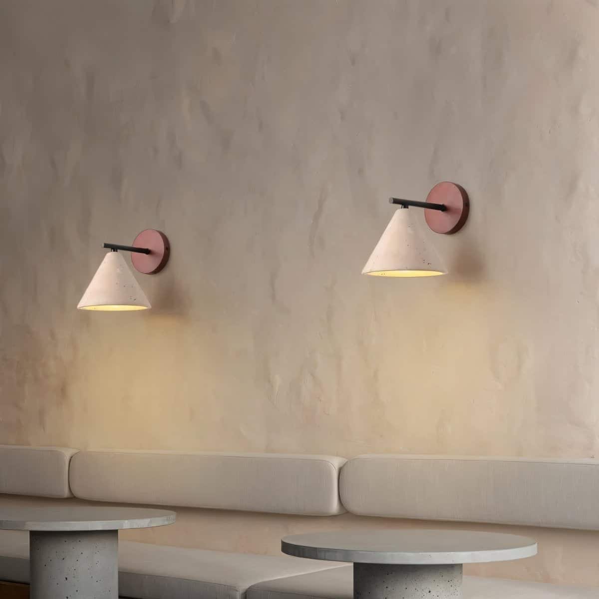 Omicil Travertine Wall Lamp is a minimalist yet elegant lighting fixture crafted from unique travertine material. Its conical-shaped lampshade offers a soft, warm glow, making it ideal for modern interiors. The lamp’s clean, geometric design complements its natural textures, while the subtle wall mount in a contrasting finish adds sophistication. The combination of natural travertine and sleek black accents creates a refined balance of rustic and contemporary aesthetics.