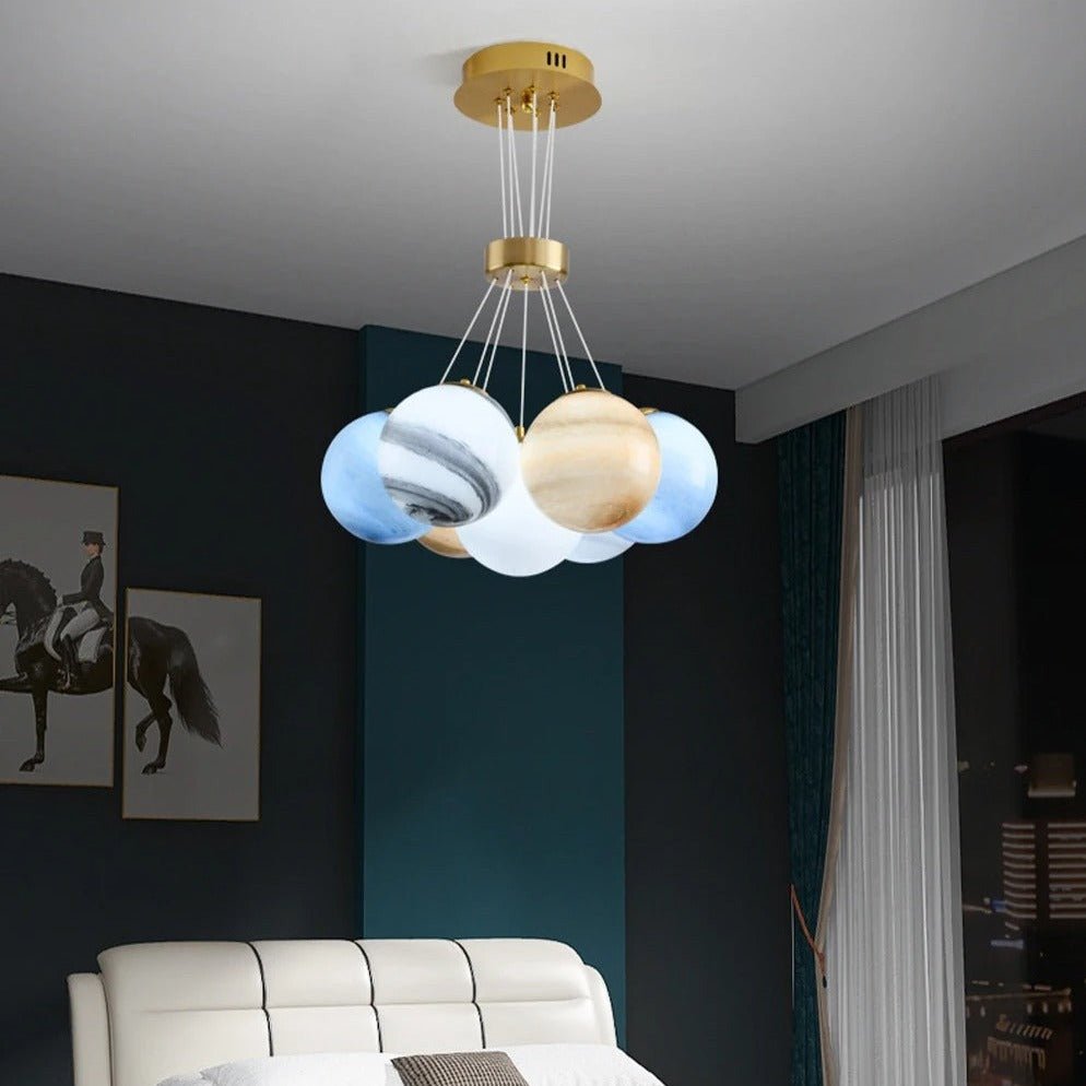 Illuminate your space with the Orbea Chandelier, a stunning planet-moon design that adds a touch of creativity to any room. The exquisite orbs in this unique chandelier create a unique atmosphere, perfect for dining or relaxing. A must-have for stylish living spaces.