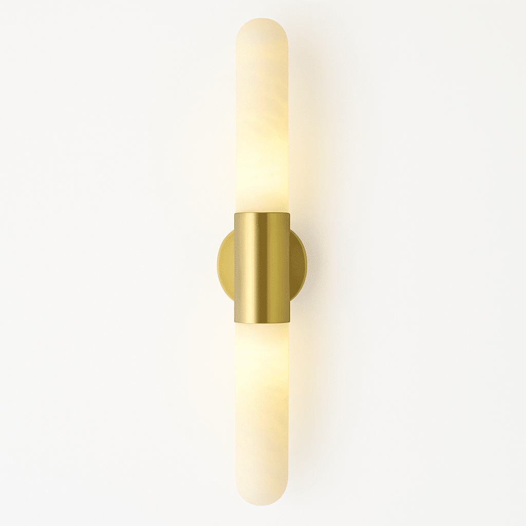 The Orivexa Wall Lamp is a vertical light fixture combining copper and alabaster for a refined, modern design. Its cylindrical alabaster diffuser emits soft, even lighting, anchored by a sleek metallic center in two color options. Ideal for bedrooms, hallways, and living spaces, this wall-mounted fixture blends functionality with minimalist aesthetics, enhancing contemporary interiors.