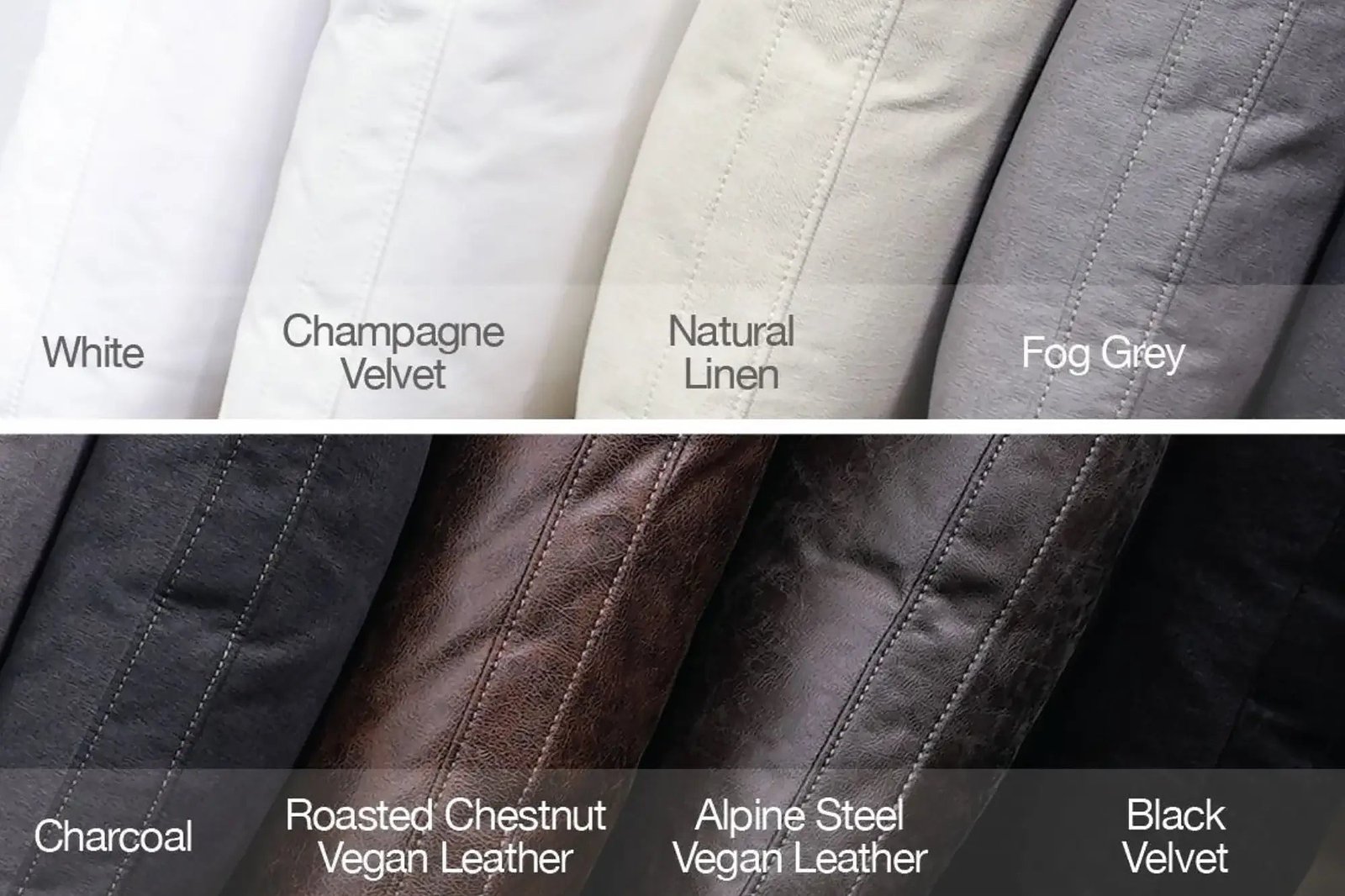 • Roasted Chestnut Vegan Leather – a warm, rich, and sophisticated material that’s unbelievably soft, durable, and sink-in cozy. Think Tesla vegan leathers, with no cowhide stickiness. And yes, it’s even washable