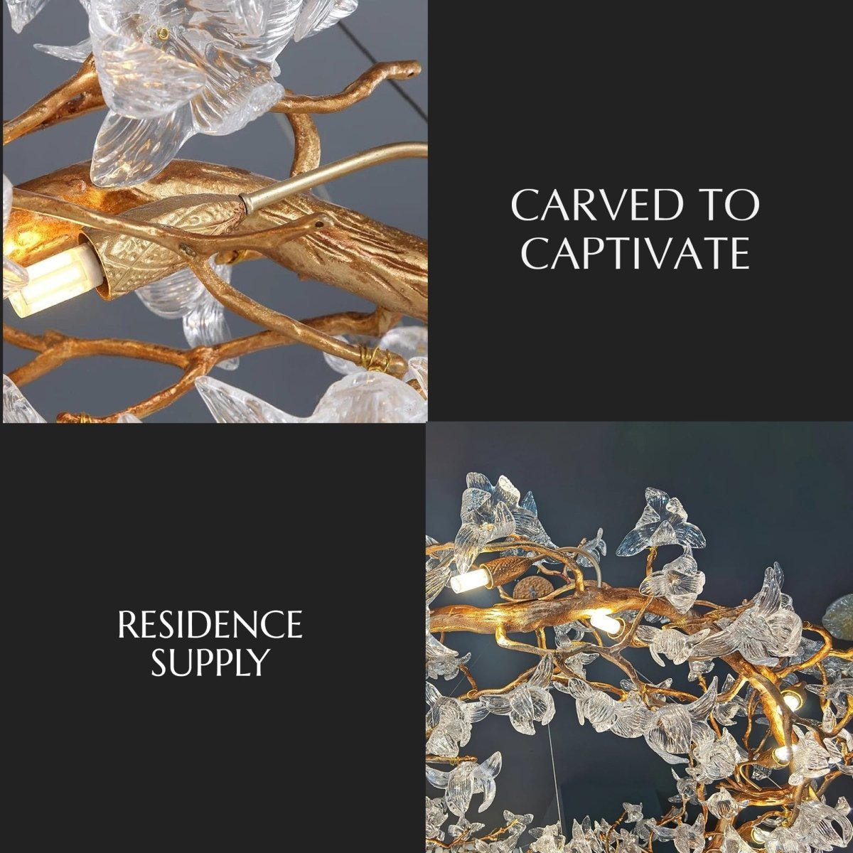 - Crafted with crystal-adorned brass, it reflects luxury and sophistication in its material and design.
