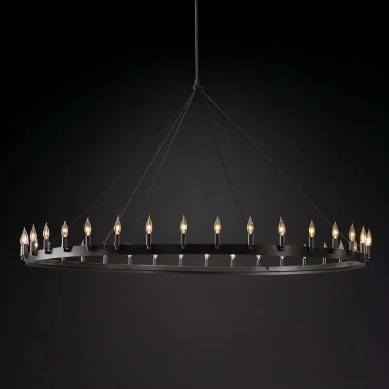 Our vintage filament chandelier is inspired by early twentieth-century industrial styles. It has a rustic appearance, and simple shapes, and is large in size. It is made of strong-angle iron and combines elegance with a rugged design for both style and functionality.