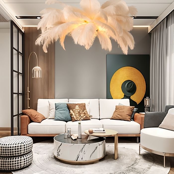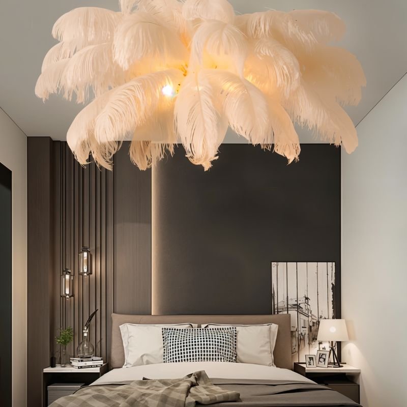 The Plume Chandelier exudes old Hollywood glamour and opulence.