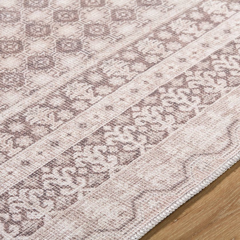 Rainier Cottage Cream/Dark Brown Washable Area Rug is more than just a pretty additionits made for real life. The low pile height makes vacuuming and daily maintenance simple, while the stain-resistant polyester holds up to dirt, foot traffic, and the occasional mess. When its time for a deeper clean, just toss it in the washing machine on a cold, delicate cycle and lay it flat to dry.