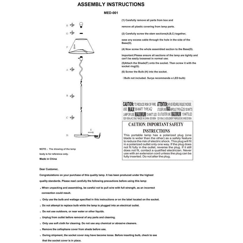 - Colors: Body: Metallic – Brass; Base: Metallic – Brass; Shade: White; Cord: Translucent