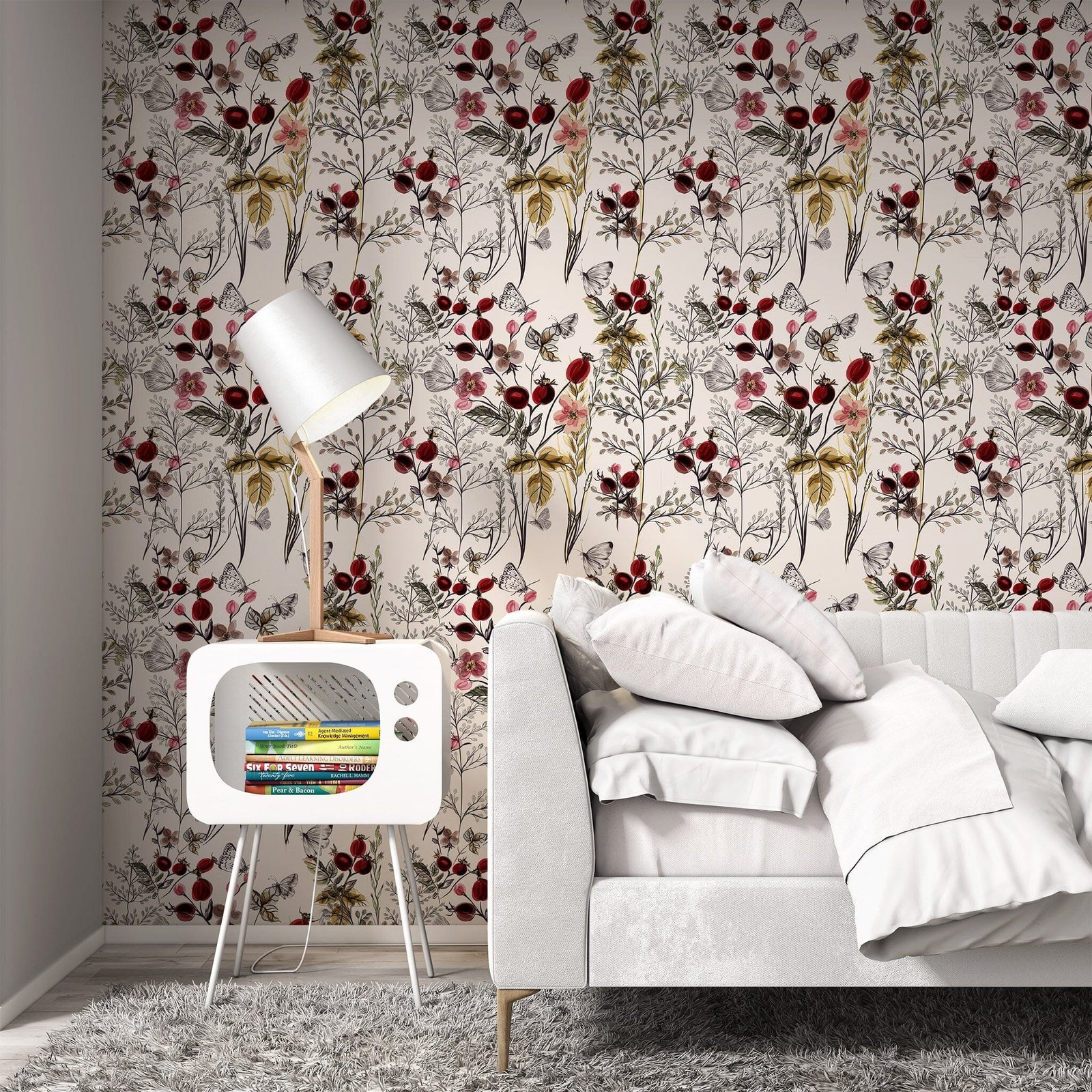 Red Flower Rose Hip Wallpaper adds a vibrant and classic touch to any room. Peel and stick removable vinyl makes installation and removal quick and easy. Get a unique look with lasting durability for any space – perfect for a DIY project for at home or office.