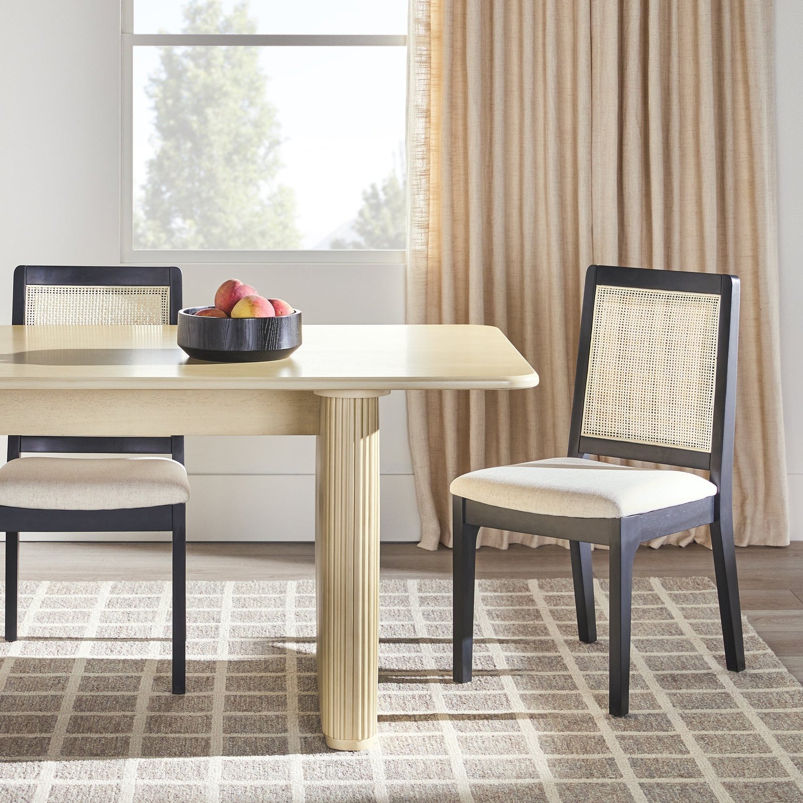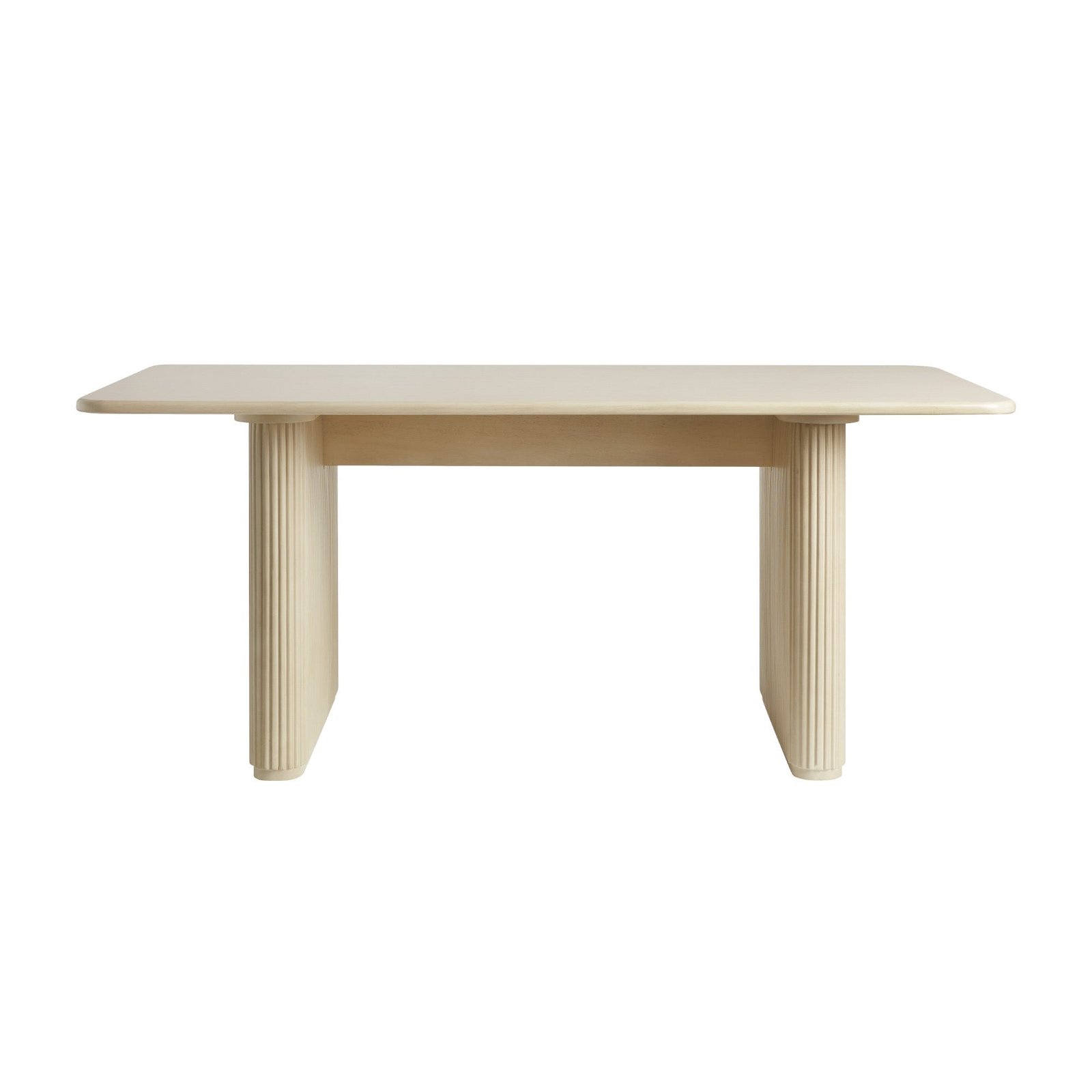 It’s time to take your dining experience to new heights with this unique mid-century modern dining table. Designed with two curved bases wrapped in vertical reeding, this roomy table makes a statement in any space. The natural-looking birch wood veneer brings warmth and texture to your room and pairs well with both modern black or natural wood stain chairs. This 68-inch table is ideal for hosting or enjoying a weeknight meal with your family. Seat six to eight people comfortably, or even use the table as your go-to spot for working, crafting, homework, or other activities.