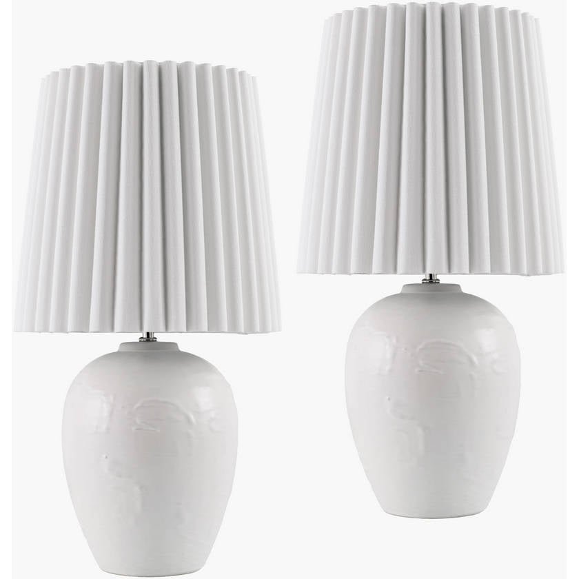 - Material: Body: Ceramic; Shade (Outside): Linen; Shade (Inside): Polyester