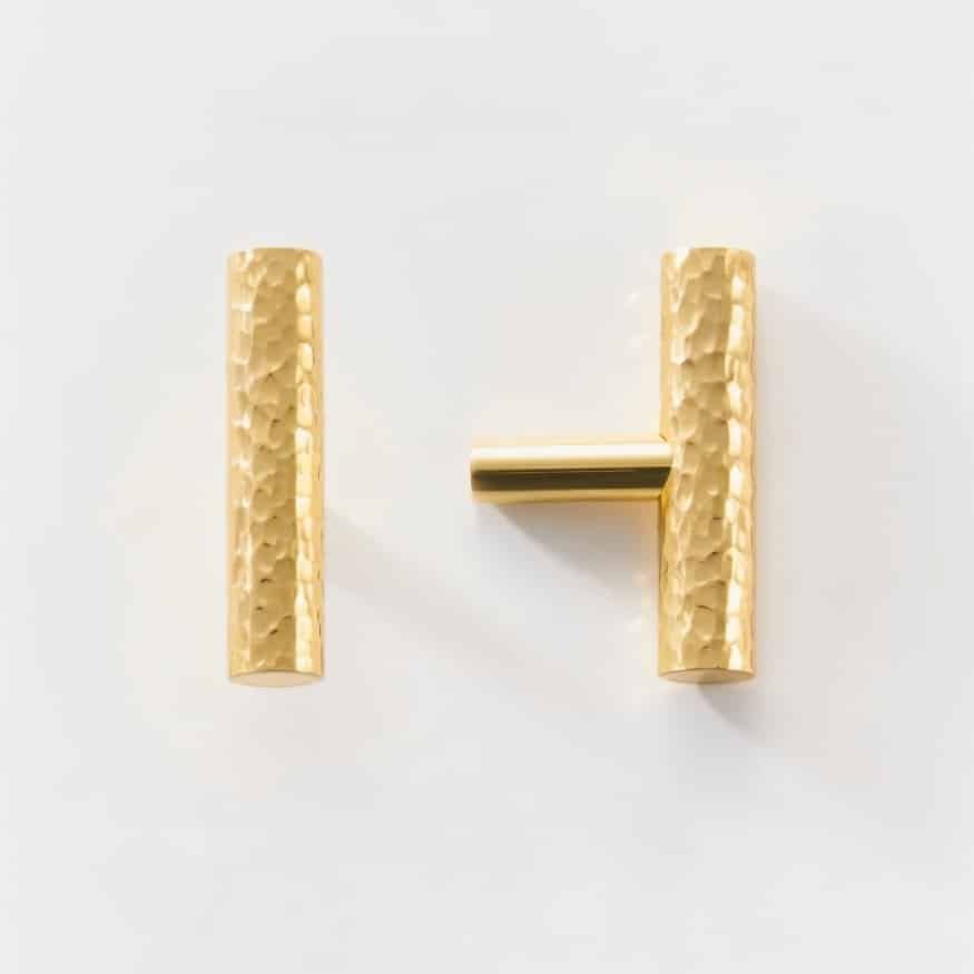 The Remy Knob And Pull Bar features a hammered brass design, offering a textured, artisanal look with enhanced grip. Made from durable solid brass, it is perfect for cabinetry, drawers, and closet doors. Its sleek design adds elegance to kitchens, bathrooms, and wardrobes, blending functionality with timeless style.