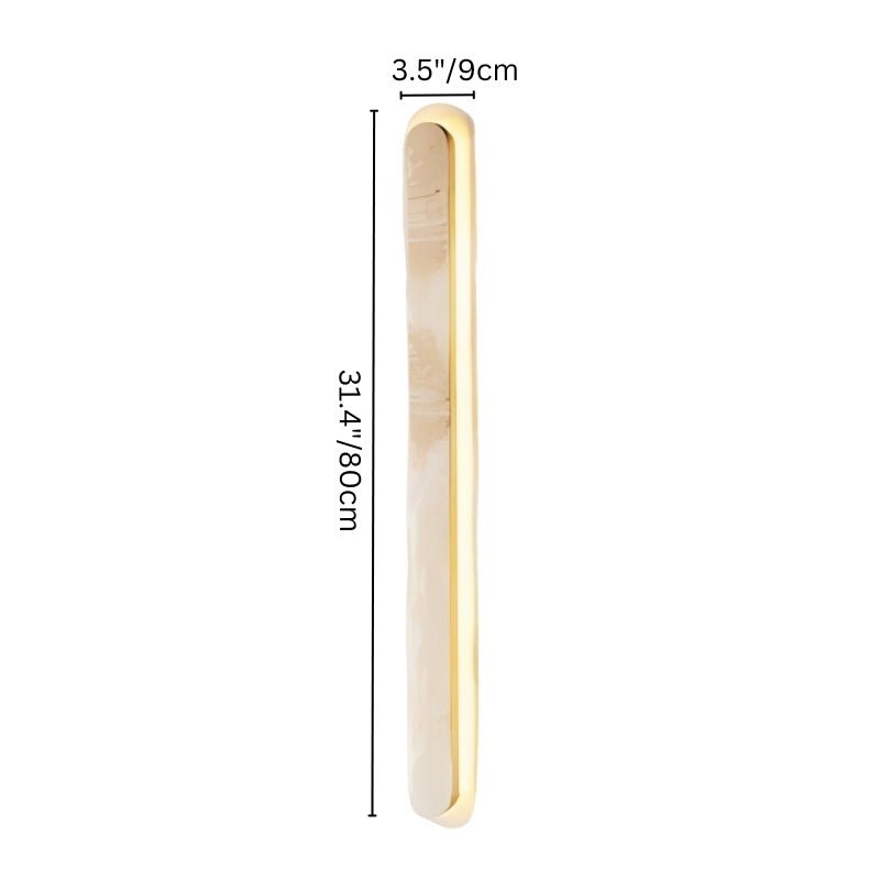 The Rina Wall Light is a sleek and modern light fixture crafted entirely from natural travertine, combining timeless elegance with minimalist design. Its elongated structure emits a soft, ambient glow, making it ideal for installation in hallways, bedrooms, or living spaces. The natural travertine texture adds warmth and sophistication, seamlessly complementing contemporary and modern interiors. This durable wall light provides both functional illumination and artistic appeal.