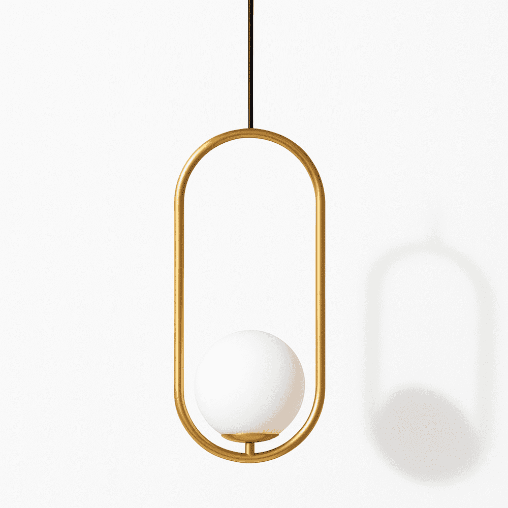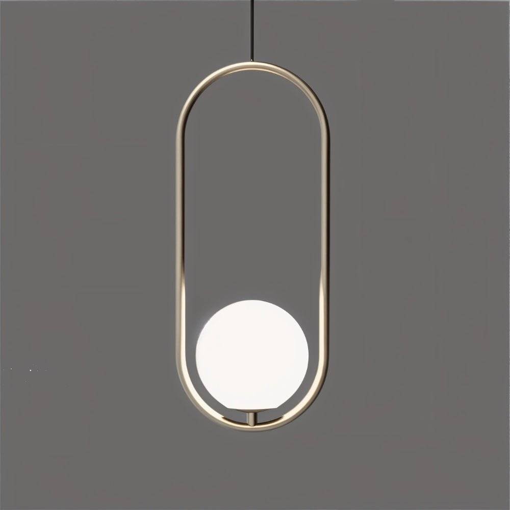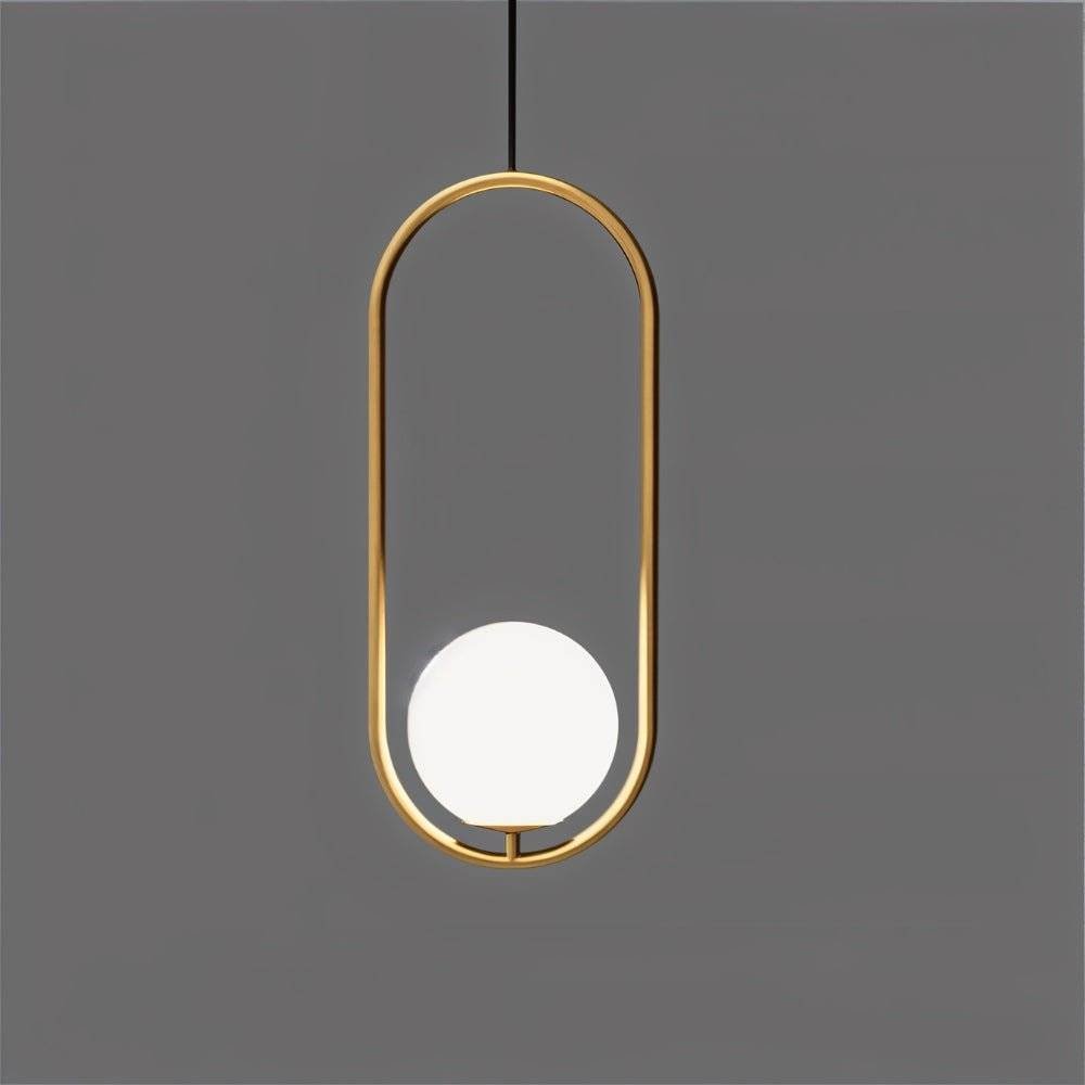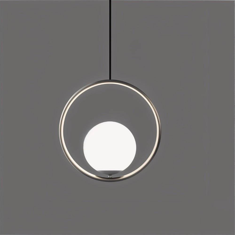 The Ring Pendant Light features a captivating design with a clear glass globe suspended within a sleek gold metal ring. This modern light fixture creates a warm and inviting atmosphere, perfect for illuminating dining rooms, kitchens, and living spaces. Its unique design adds a touch of sophistication to any contemporary interior