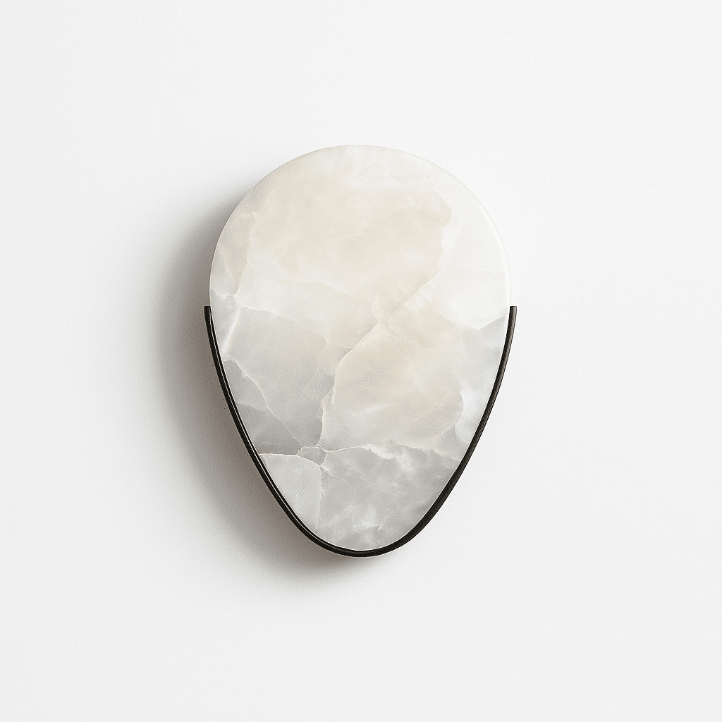 This masterpiece is a modern wall sconce made of metal and alabaster. It’s designed to bring calmness to bedrooms, hallways, and balconies, combining modern style with timeless beauty. This elegant fixture doesn’t just light up spaces; it adds a touch of sophistication to your home décor.