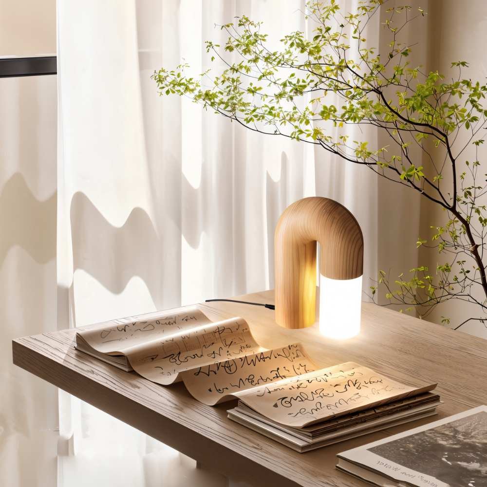 The Salot table lamp is a modern light fixture that blends minimalist design with natural materials. Crafted from smooth, curved wood and frosted acrylic, this U-shaped form delivers a warm ambient glow while doubling as a sculptural decor piece. The light fixture’s unique silhouette adds organic elegance to interiors, making it ideal for bedside tables, desks, or accent cabinets. Designed for both functionality and aesthetics, this wood and acrylic table lamp suits contemporary, Scandinavian, and Japandi-inspired spaces.
