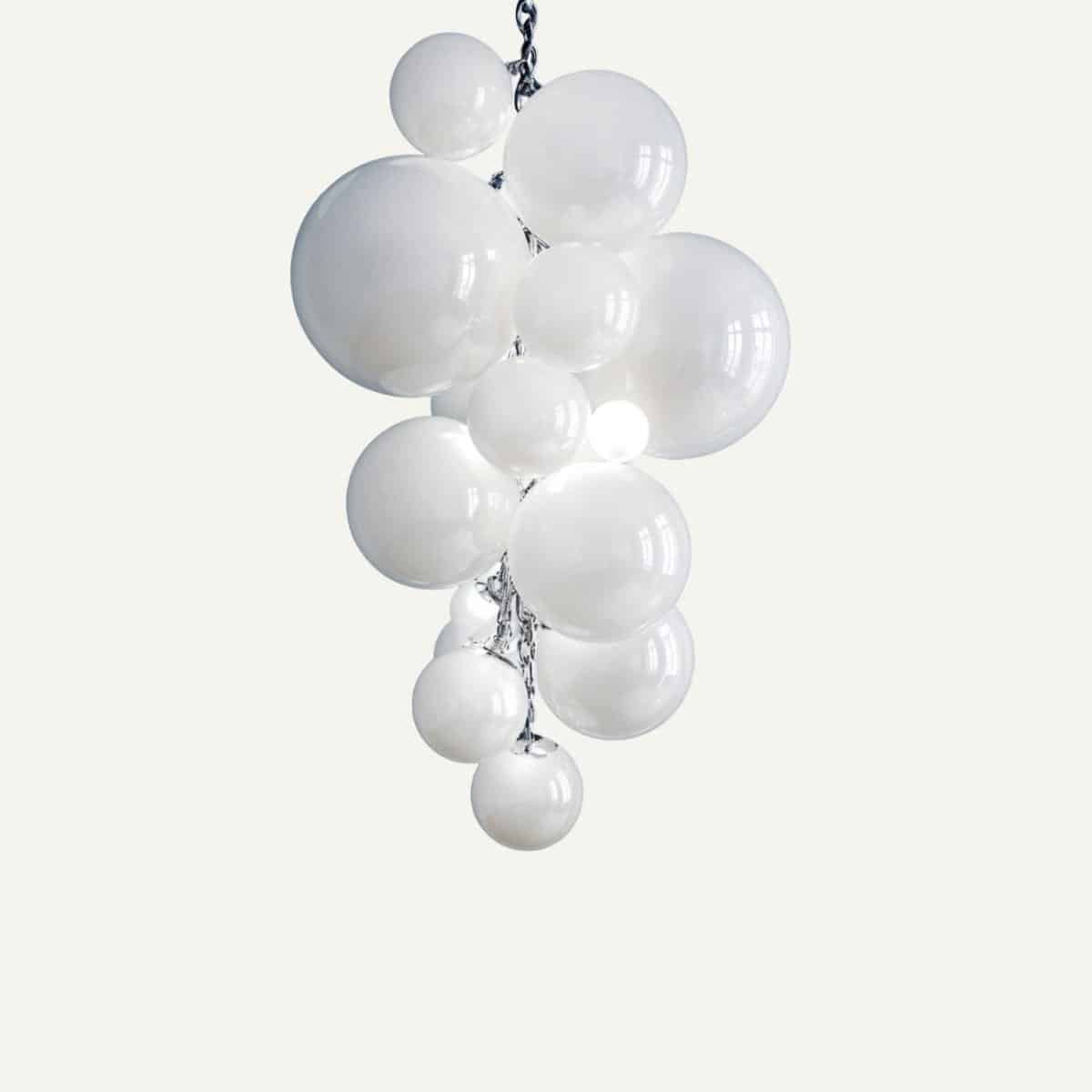 • Boasts several fiber-reinforced plastic spheres suspended by metal chains for a striking visual impact.