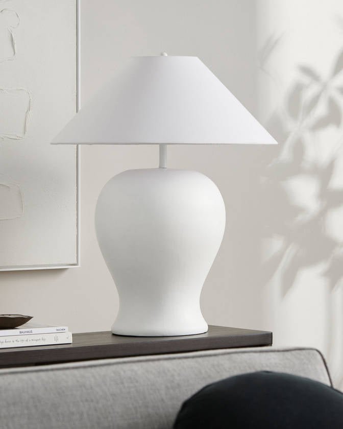 - Material: Body: Ceramic; Shade (Outside): Linen, Linen; Shade (Inside): Linen, Plastic; Finial: Resin