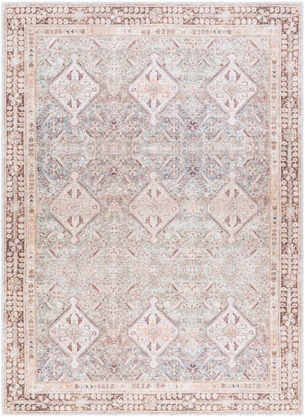 Enhance your home with the Shalini Traditional Dark Brown Washable Area Rug, a sophisticated blend of intricate traditional patterns and modern convenience. Designed with a refined palette of dark brown, apricot, olive, and white, this rug adds warmth and timeless charm to any space. Expertly machine-woven in Turkey from 100% Polyester with a 100% Cotton warp, its no-pile construction ensures a smooth, flat finish thats ideal for high-traffic areas. Whether styled in a living room, bedroom, or entryway, this rug elevates your decor with a touch of understated elegance.