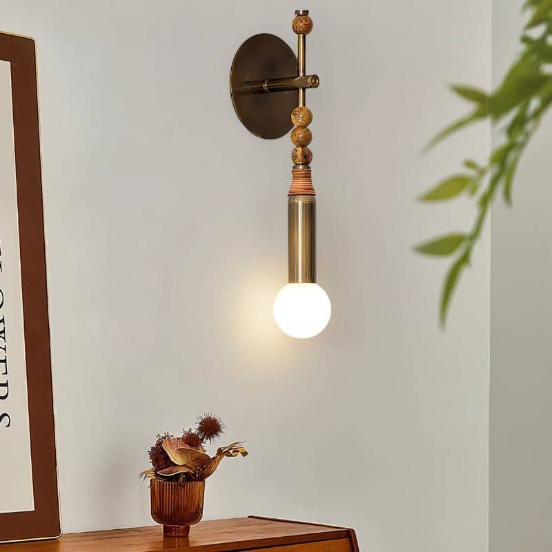 The Shalti wall lamp is an elegant light fixture featuring a vintage-inspired design with a copper base and delicate glass bulb. Its vertical structure, adorned with decorative elements, creates a refined aesthetic that complements classic and contemporary interiors. The exposed bulb emits warm, ambient lighting, making it ideal for accent walls in bedrooms, hallways, and living rooms. Designed for both residential and hospitality spaces, this wall lamp blends timeless charm with modern sophistication, enhancing any setting with its distinctive presence.