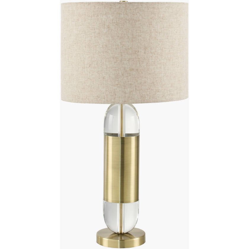 - Colors: Body: Clear, Metallic – Gold; Base: Metallic – Gold; Shade: Beige; Finial: Metallic – Gold; Harp: Metallic – Brass; Cord: Translucent