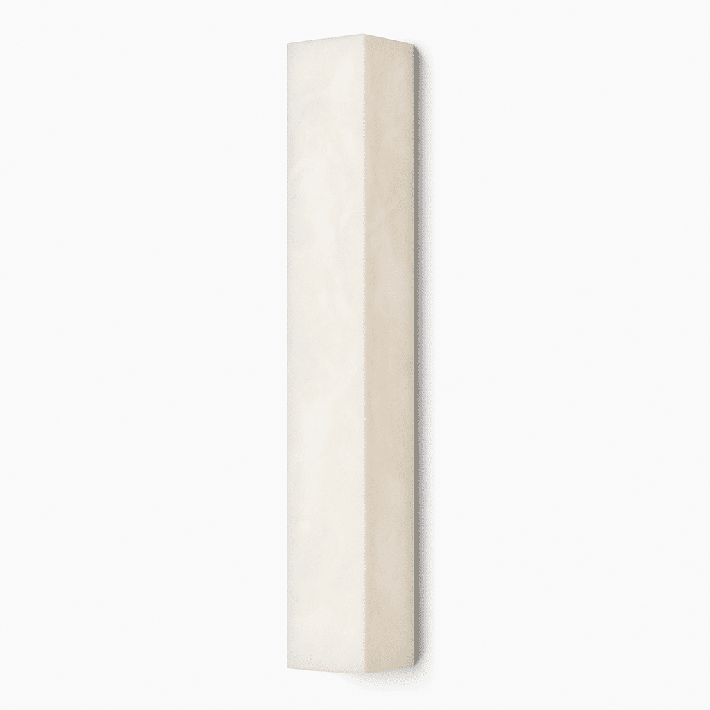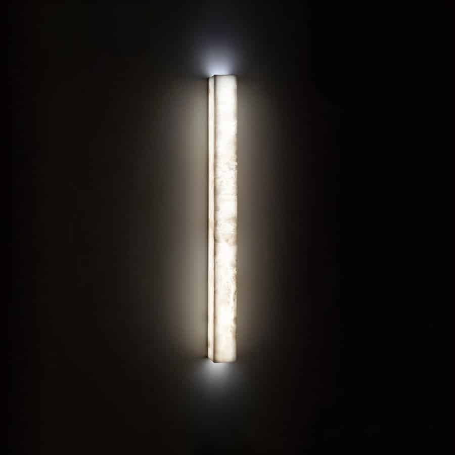 This Wall Light, made with metal and alabaster, showcases a sleek design suitable for various interior styles. Whether installed singularly as a standout focus or grouped for a unified lighting setup, its shape brings a modern and sophisticated touch, enhancing the space with a refined aesthetic.