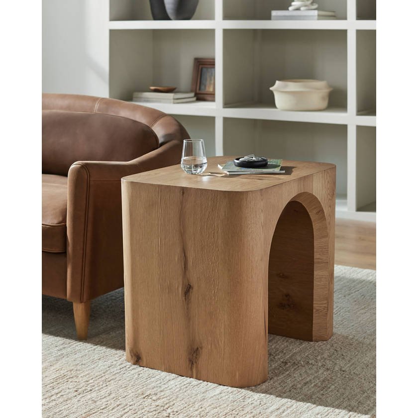 Introducing the Shineka End Table, a perfect blend of minimalist modern style and practicality. This chic piece, manufactured in India, is made from stunning oak veneer that adds an elegant touch to any room. Its design is straightforward yet sophisticated, making it a versatile addition to your home decor. The Shineka End Table requires minimal maintenance; simply wipe clean with a dry cloth and avoid harsh cleaners to maintain its beautiful finish. Add this stylish end table to your furniture collection and enjoy the effortless elegance it brings!