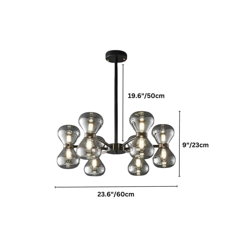The Silvine chandelier is a striking light fixture featuring a bold geometric iron frame supporting multiple spherical glass shades. Its unique design creates a captivating play of light and reflections, enhancing modern and industrial interiors. The smoked or clear glass diffusers add depth, while the iron structure ensures durability. Perfect for dining rooms, living spaces, or bedrooms, this chandelier delivers a balanced blend of elegance and contemporary edge.