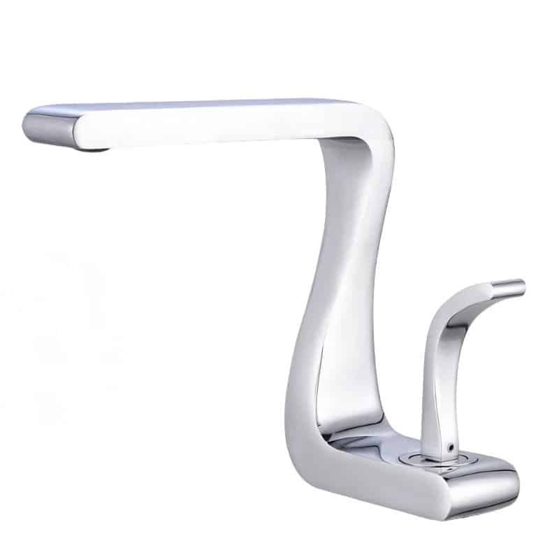 Sincan bathroom faucet is designed with a bold, contemporary flair, featuring an angular yet fluid silhouette. Crafted from durable brass, this faucet offers long-lasting strength and resistance to corrosion. Its wide, flat spout provides a smooth water flow, complementing the faucet’s minimalist design.