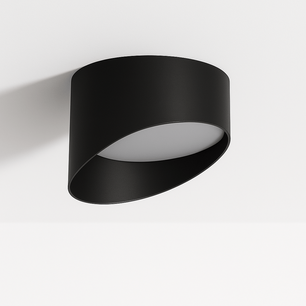 The Siona Downlight is a modern aluminum light fixture with a sleek cylindrical shape and asymmetric cut for focused downward lighting. Its flush-mounted design suits hallways, living rooms, offices, and commercial spaces. The matte black finish enhances contemporary interiors, while its durable aluminum body ensures longevity. Perfect for creating a modern ambiance with style and functionality.