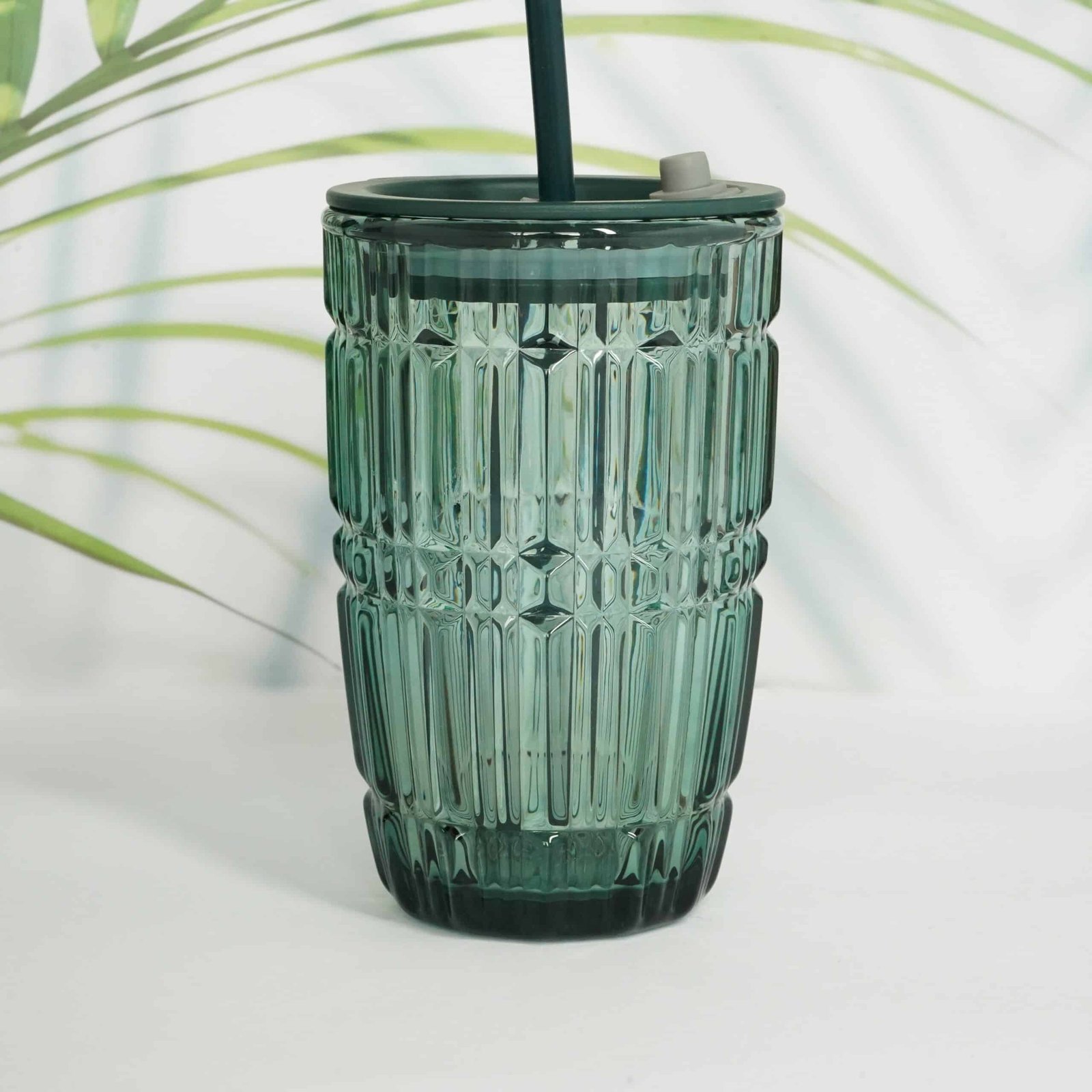 Green Fluted Glass Sipper | Includes Reusable Straw