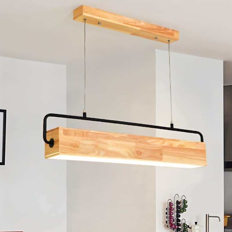 Solyra – Modern Wood And Iron Rectangular Pendant Light Fixture