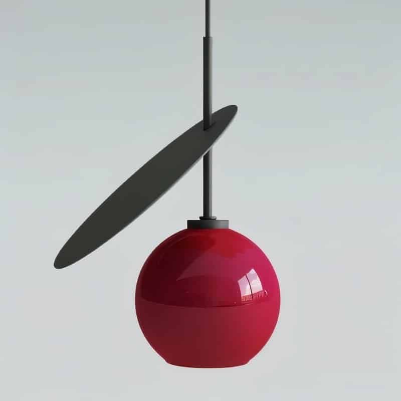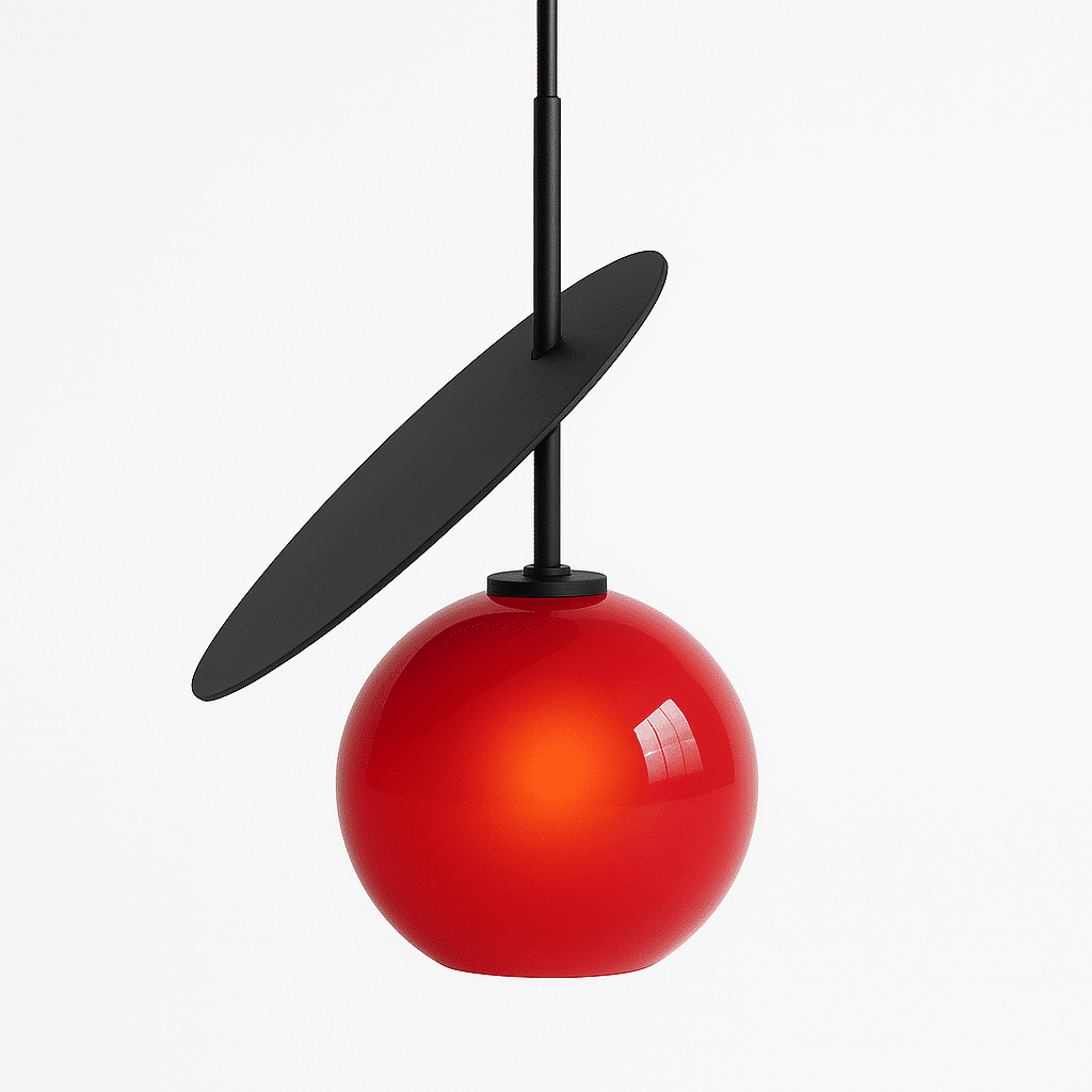 The Sorcha Pendant Light is a modern light fixture featuring a spherical iron and metal body, paired with a sleek, angled metal disc for a striking geometric contrast. Its bold design creates dynamic light and shadow effects, making it an artistic statement in any space. Ideal for kitchen islands, dining areas, and modern interiors, it blends industrial and mid-century aesthetics. This pendant light delivers both style and functional illumination, enhancing contemporary spaces.