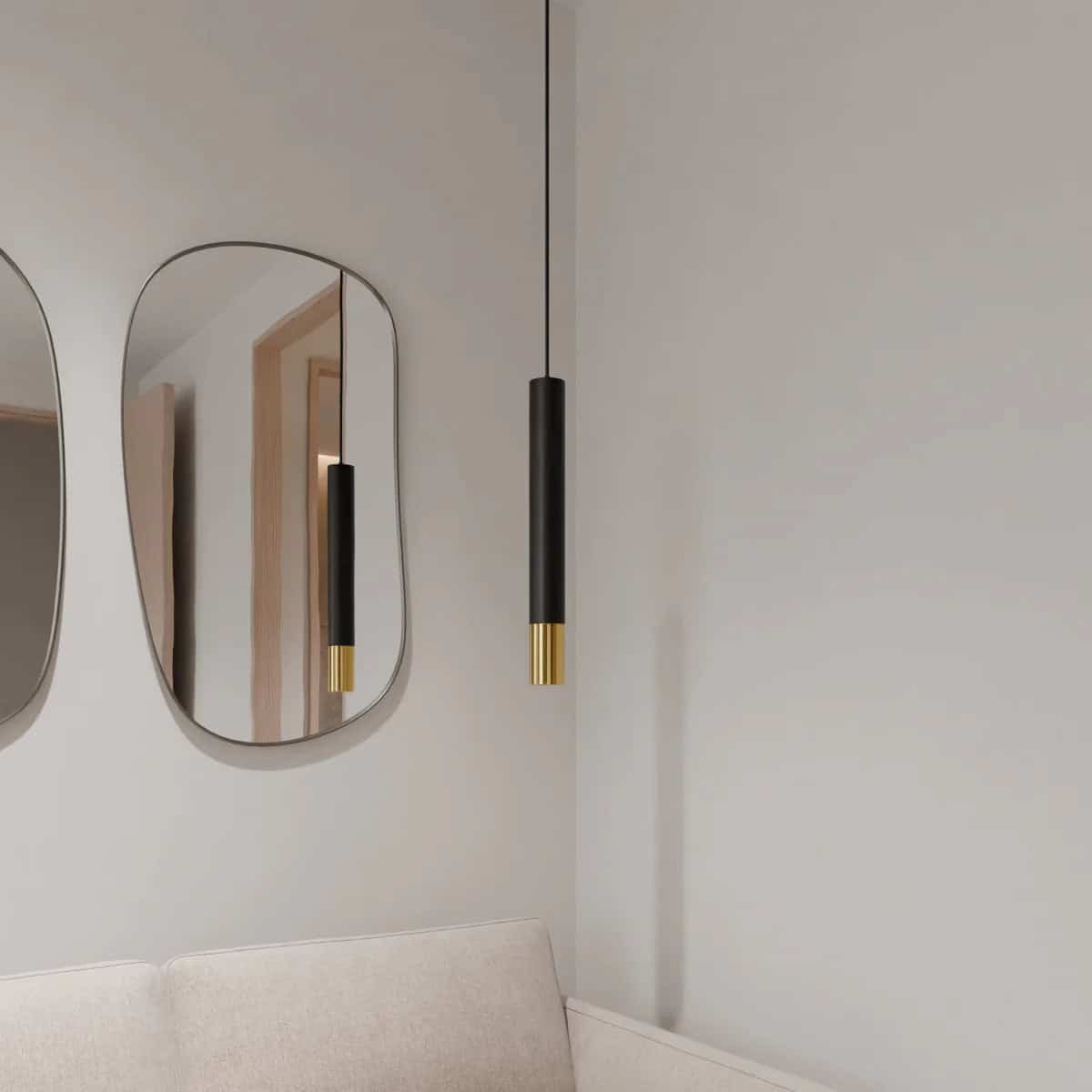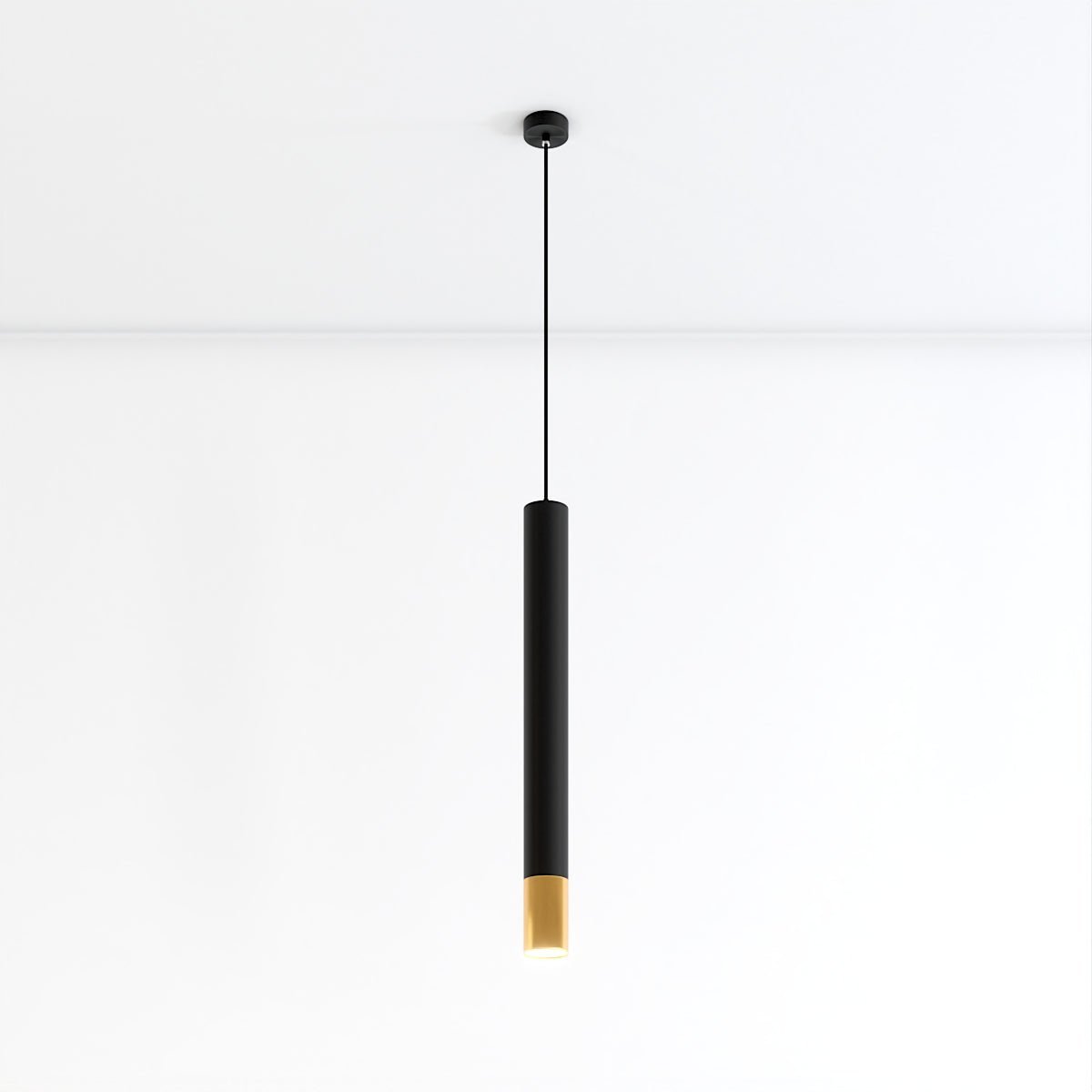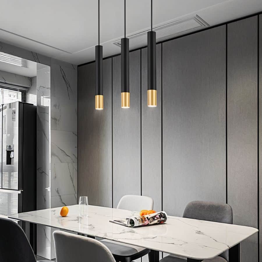 The Stark Pendant Light features a sleek cylindrical design with a contrasting gold band, adding a touch of modern elegance to any space. This minimalist light fixture is crafted from durable aluminum and is perfect for illuminating kitchen islands, dining tables, or home bars, creating a stylish focal point in contemporary interiors.