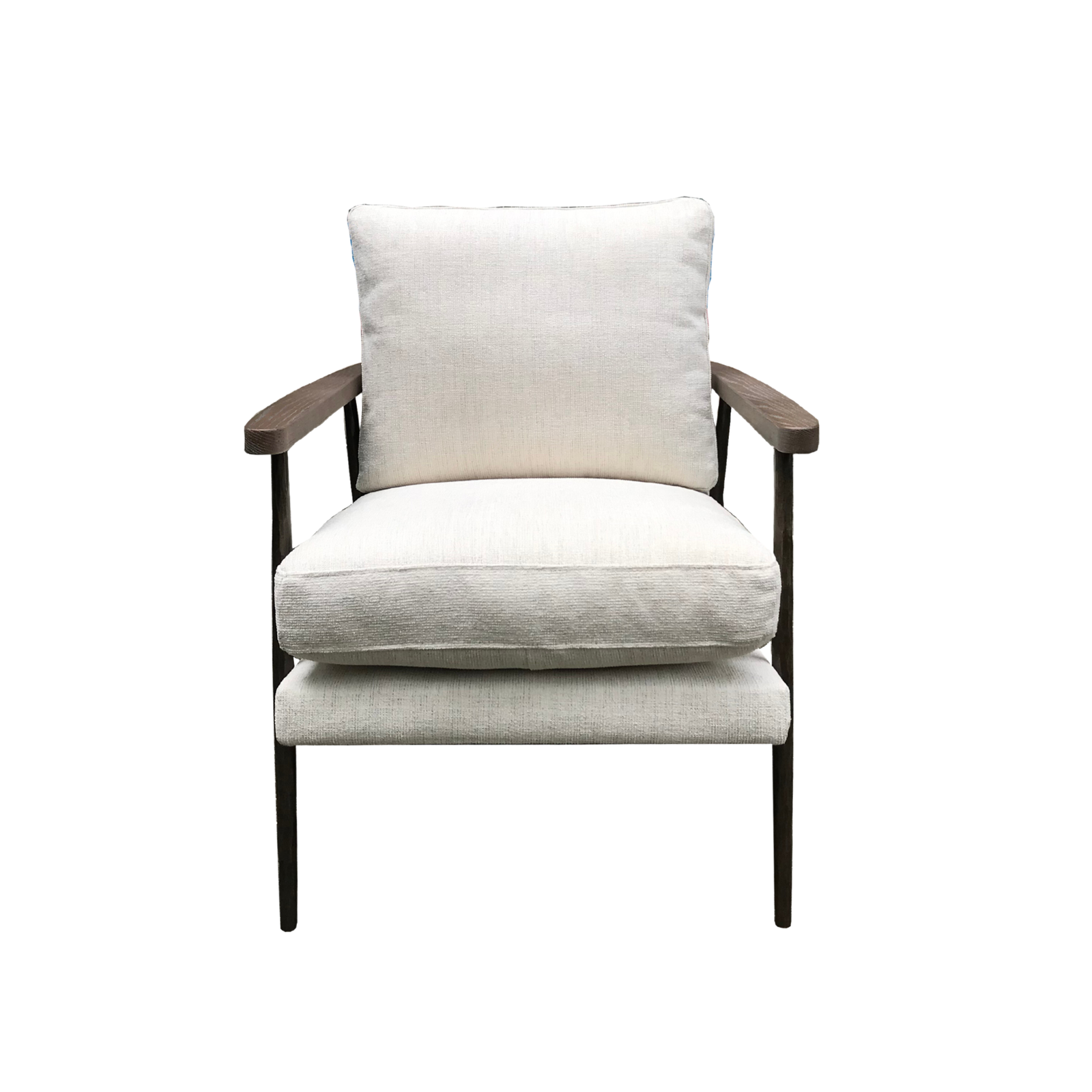 Elevate your space with the Steinbeck Chair – an accent chair that excludes sophistication. Wrapped in a textural white fabric, this chair seamlessly blends forged metal with solid oak wood arms for a contemporary yet timeless look.