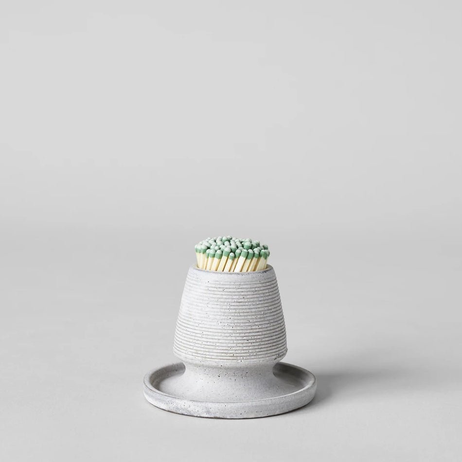 Crafted in Evanston, IL, this vintage inspired match strike with tray is hand-thrown on the potter’s wheel by Julia Finlayson. Julia uses a dark clay that is then finished with a glaze.