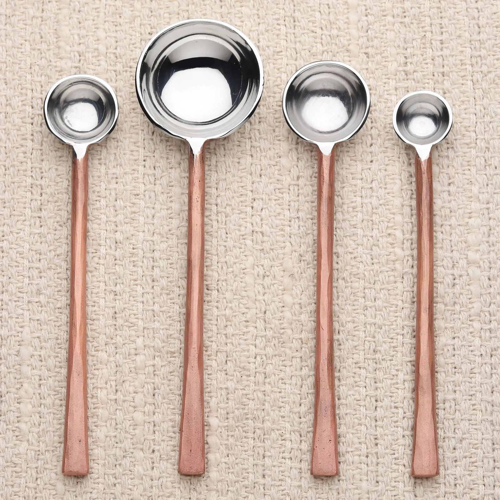 Add style and practicality to your kitchen tools with the Sundance measuring spoon set. Ideal for baking or cooking, this set features round organic handles for a comfortable grip when measuring sugar, baking soda, coriander, and thyme. A must-have for your kitchen, each 4-piece set includes a ¼ teaspoon, ½ teaspoon, 1 teaspoon, and 1 tablespoon. Handcrafted with care, these measuring spoons are a must for your kitchen.