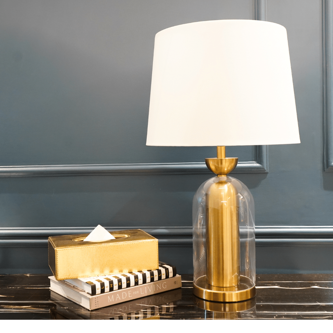 Inspired by modern luxury, the Double Layer Glass Table Lamp showcases a unique, sleek golden finish. Its minimalist yet striking design, along with the dual-layer glass base, adds sophistication to any room, making it a perfect accent for living rooms, bedrooms, or reading nooks. Designed to provide optimal lighting while enhancing your décor, this lamp stands out for its timeless appeal.