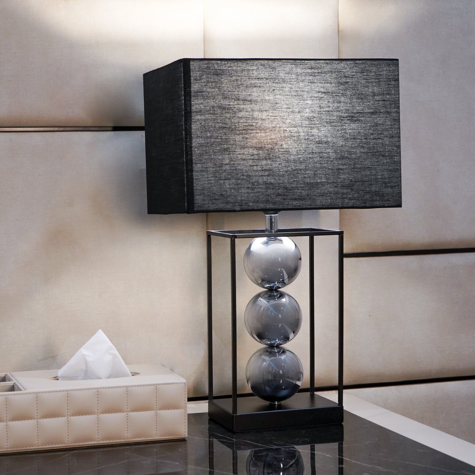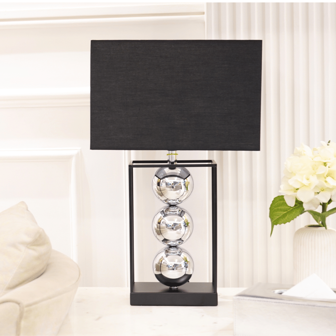 Inspired by contemporary artistry, the STELLA Stacked Spheres Table Lamp features a striking design of three black spheres stacked together, offering a bold and modern aesthetic. Perfect for adding a touch of elegance to your living spaces, this lamp blends seamlessly with both contemporary and traditional interiors, making it an eye-catching addition to any room.