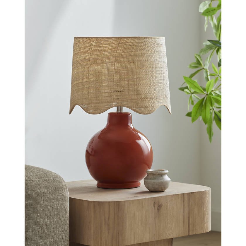 Illuminate your space with the Tereza Accent Table Lamp, a beautiful style statement for any room. This lamp boasts a body constructed of ceramic for a sleek and modern appeal, while its unique rattan shade casts a warm, inviting glow throughout your surroundings. The interior metal shade ensures durability and lasting use. Standing at an impressive 22 inches tall, this lamp is not just a lighting fixture but an eye-catching centerpiece that complements various decor styles. Keep it looking brand new by wiping clean with a dry cloth and avoid harsh cleaners to protect its finish. Upgrade your home lighting with the Tereza Accent Table Lamp – where function meets fashion effortlessly.