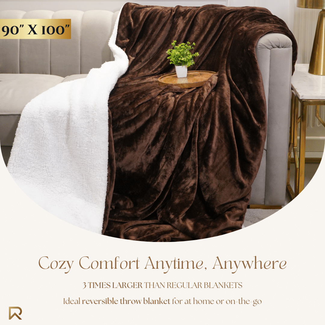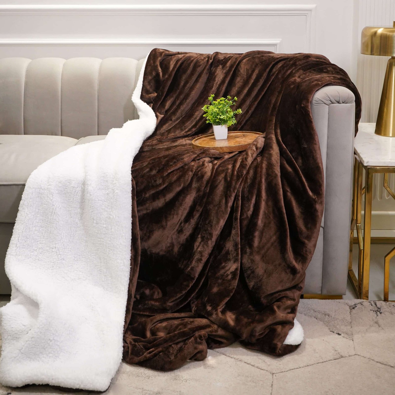 Brown Reversible Ultra-Soft Plush Sherpa Throw Blanket, Double Bed Size 90 x 100″