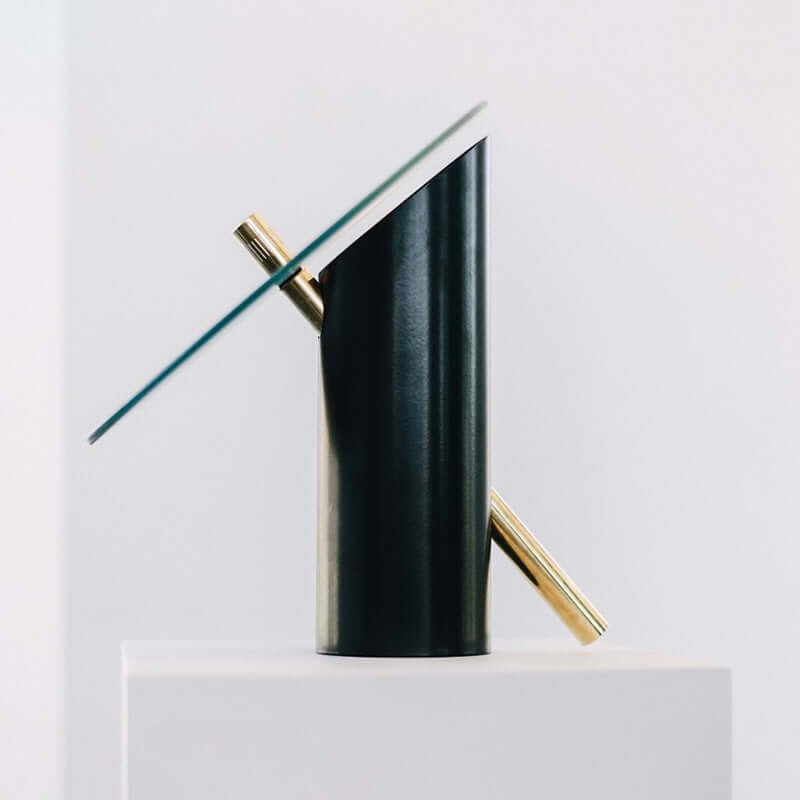 Introducing the Tinge Table Lamp, where design seamlessly guides users to the essence of illumination. Featuring a unique spinning brass knob, this lamp allows precise control over the position of its tinted glass disk, altering the brightness with a simple manual spin. Embracing an analog experience, the Tinge lamp fosters a direct connection between human, environment, and design, offering a moment of simplicity and tactile engagement in a world inundated with app technology. Experience the art of illumination reimagined with the Tinge Table Lamp.