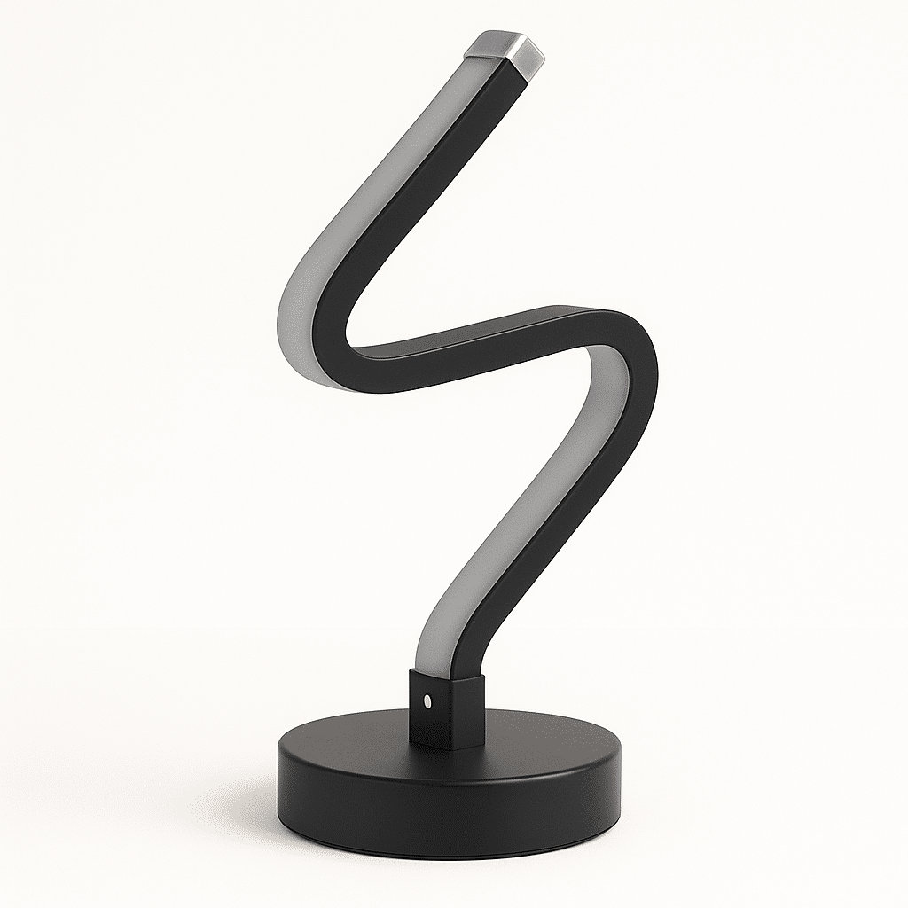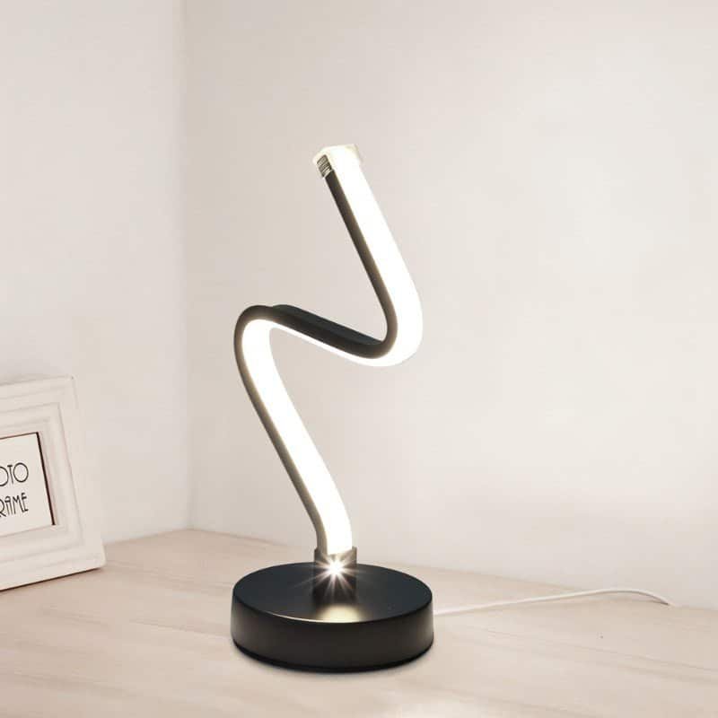 The Torsion Table Lamp is a chic finishing touch for any interior. It is made out of aluminum and iron and comes in a black powder-coated finish. It features a sleek curved form and minimal design with energy-saving LED chips that softly illuminate your space through the flexible silicone diffuser. Torsion is the ideal light for your living room, bedside, or worktable, and it is guaranteed to stand out from the crowd with its distinctiveness and novelty.