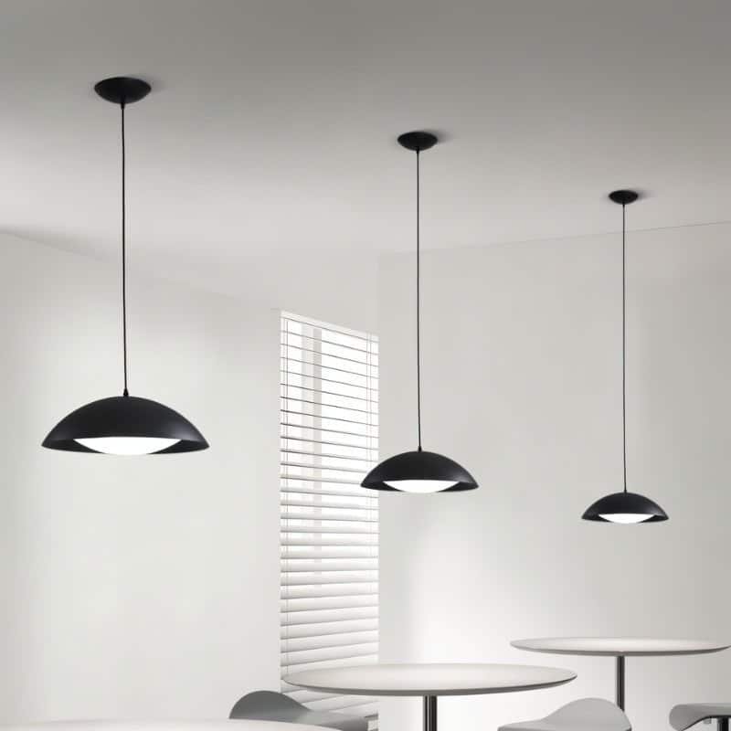 - Wide dome-shaped shade provides focused lighting, perfect for dining areas and kitchen islands.