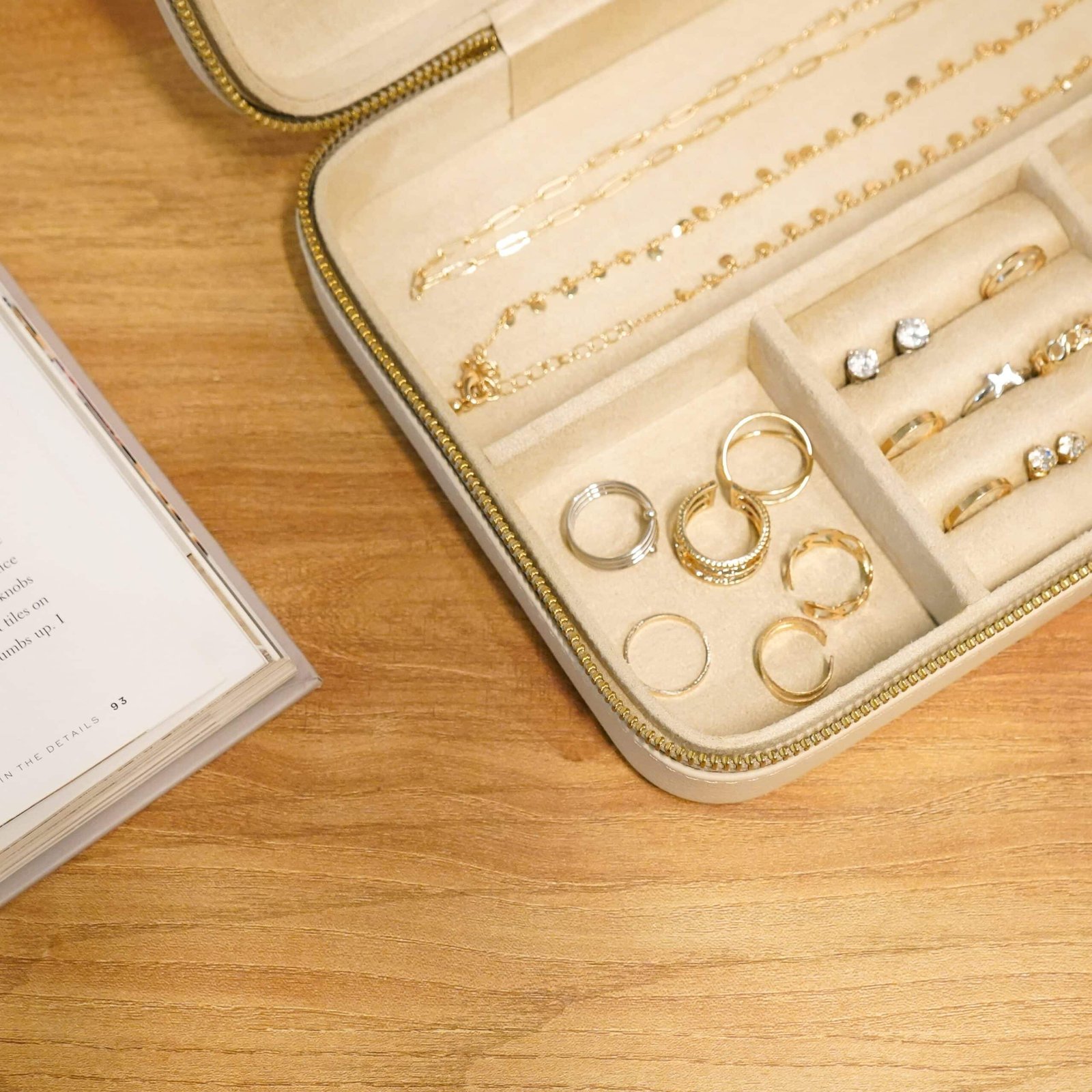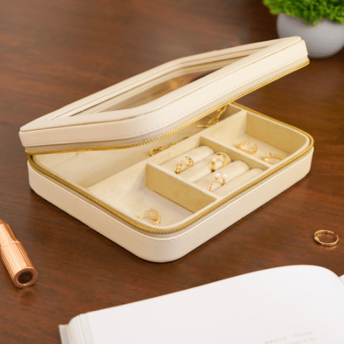 • Note: Jewelry shown in the images is for illustrative purposes only and is not included with the Beige Jewelry Box.
