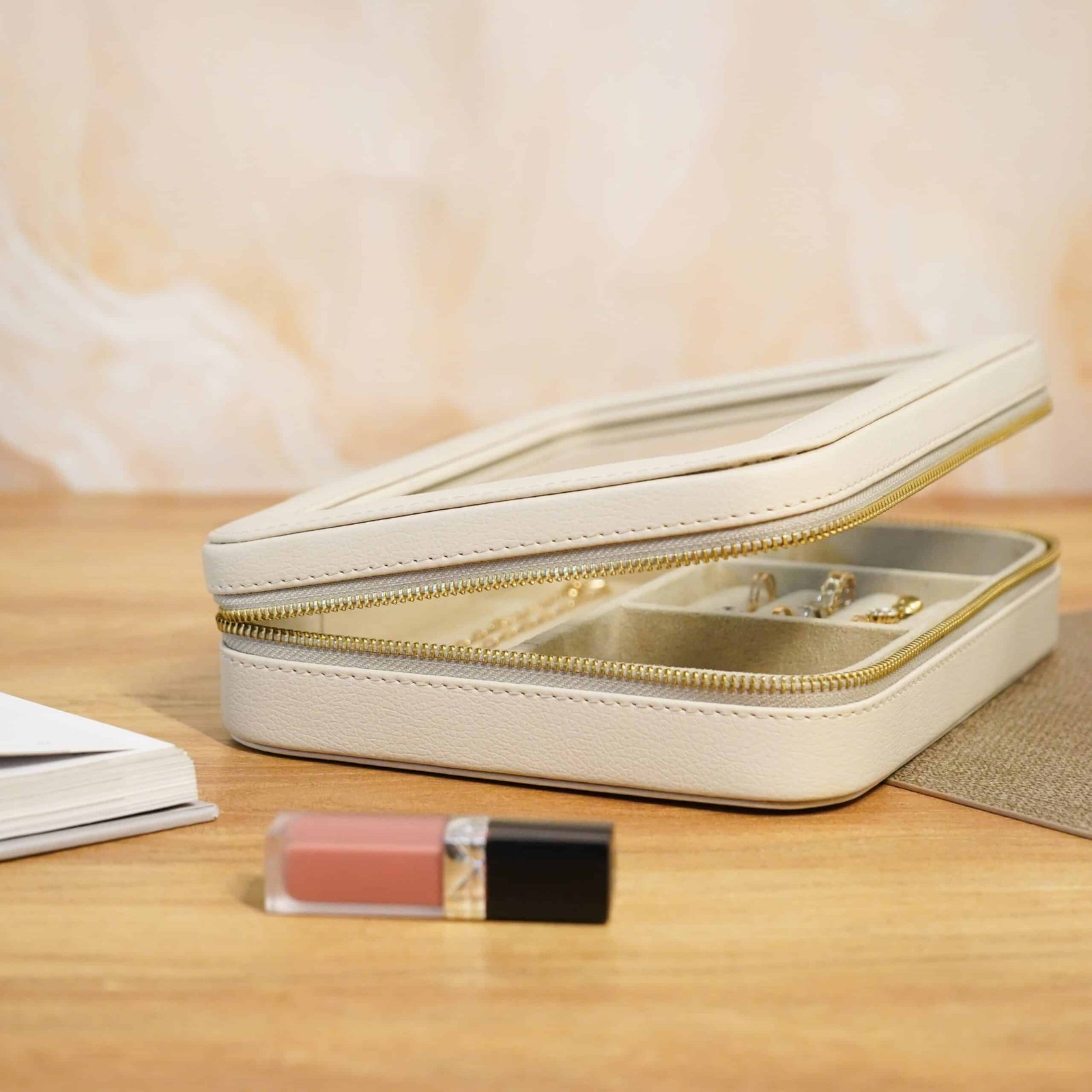 Faux Leather Jewellery Travel Organiser Box, Beige