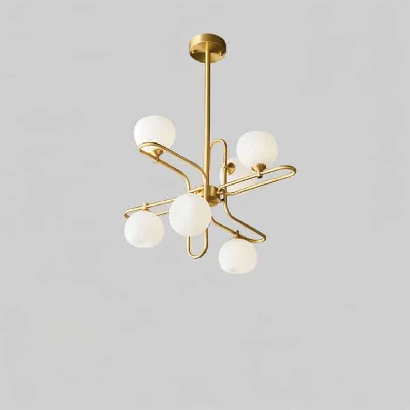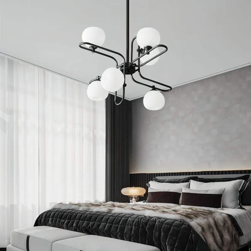 The Trevon Chandelier is a modern light fixture crafted from copper and glass, available in 6, 8, and 12-head variations. Its contemporary design features spherical glass shades and a sleek metal frame, making it ideal for living rooms, dining areas, and high-ceiling spaces. Offered in two colors, it blends seamlessly with modern and minimalist interiors. The chandelier’s dynamic arrangement enhances ambient lighting while serving as a striking focal point. Perfect for residential and commercial settings, it elevates any space with a sophisticated touch.