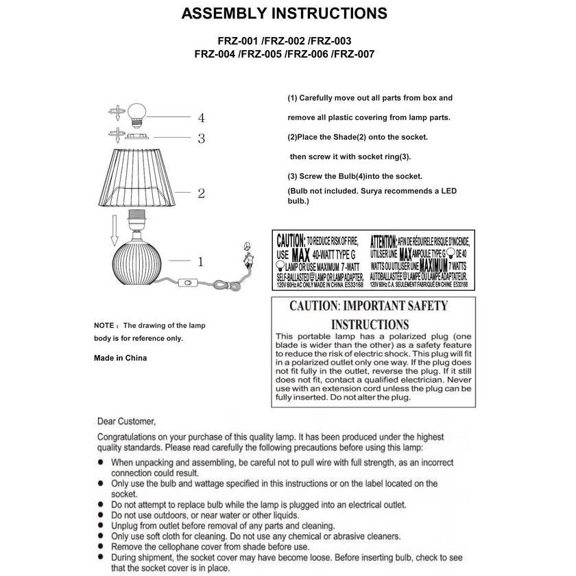 • Colors: Body: Blue; Shade: White; Cord: Translucent