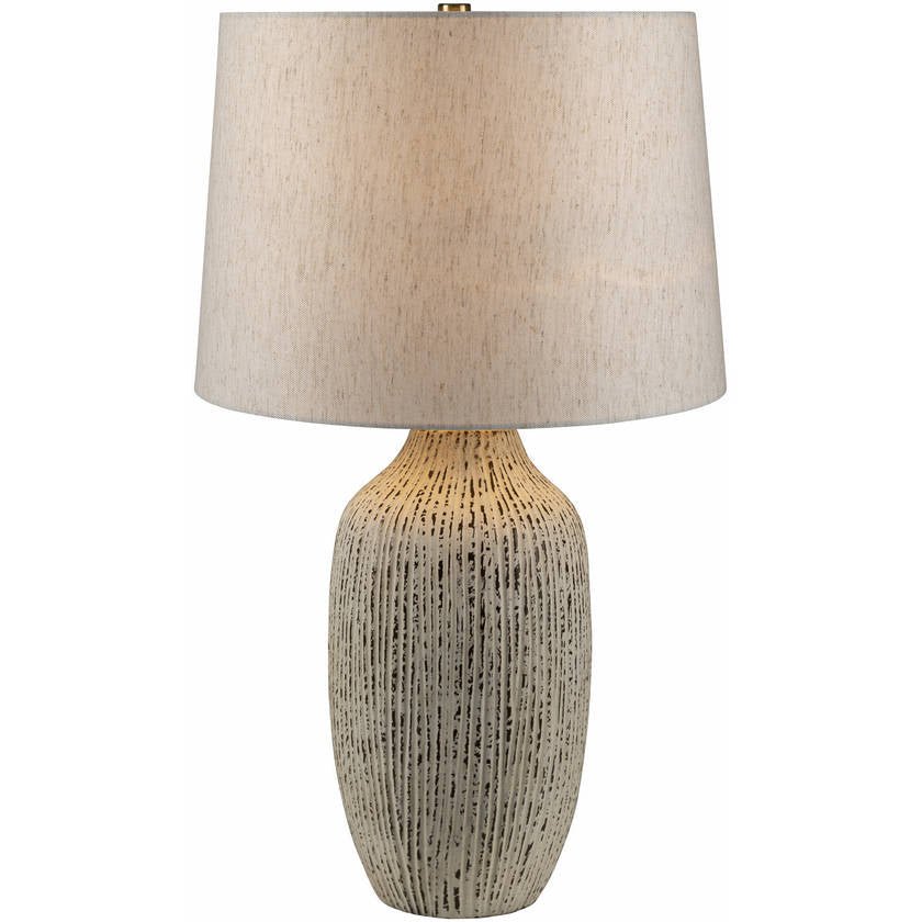 Add a touch of rustic traditional charm to your home with the Turell accent table lamp. This stunning piece features a robust ceramic body, beautifully contrasted by a shade made of linen on the outside and polyester on the inside. The metal finial adds an extra dash of elegance to this design, completing its sophisticated look. Standing at a total height of 28 inches tall, this lamp is sure to become a focal point in any room. Easy to maintain and clean, simply wipe with a dry cloth to keep it looking fresh and new. Illuminate your space with this gorgeous lamp that flawlessly combines style and functionality.