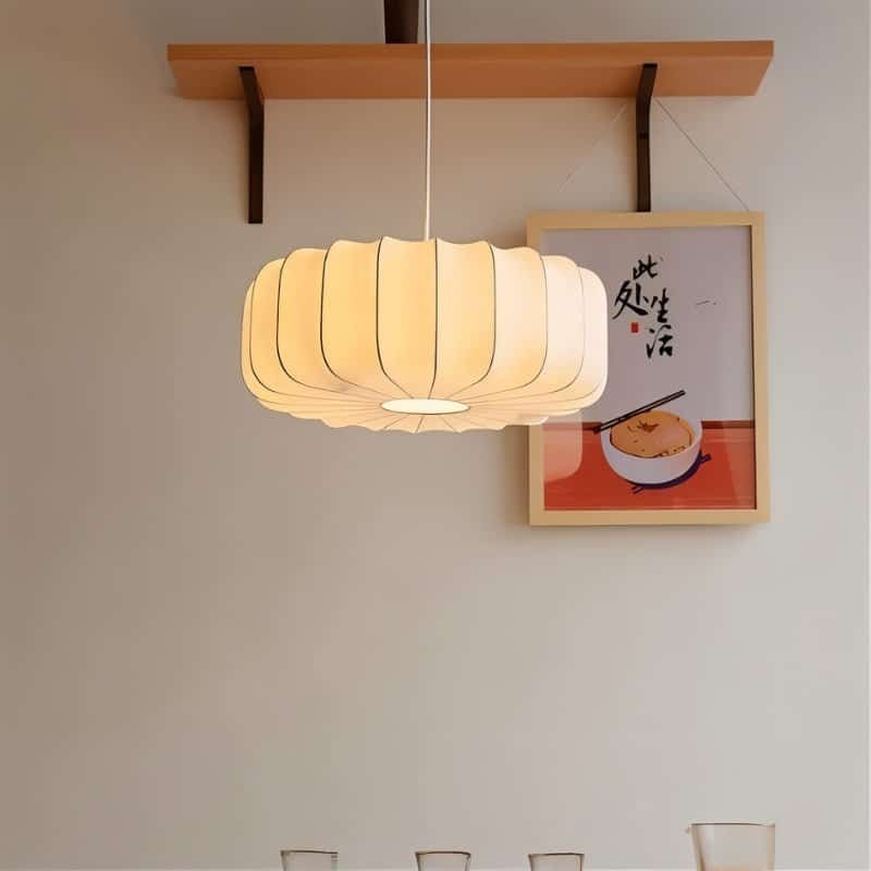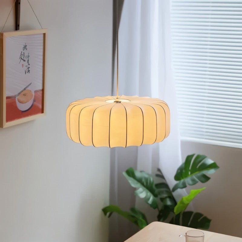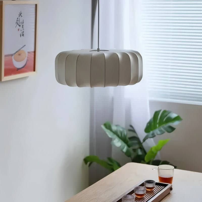 The Valma Pendant Light is an elegant light fixture crafted from iron and silk, showcasing a soft, pleated design that radiates warmth and sophistication. Its lantern-inspired silhouette diffuses light gently, creating a cozy ambiance perfect for dining rooms, bedrooms, or contemporary living spaces. Combining durable materials with artistic craftsmanship, this pendant light adds a refined touch to any interior decor.
